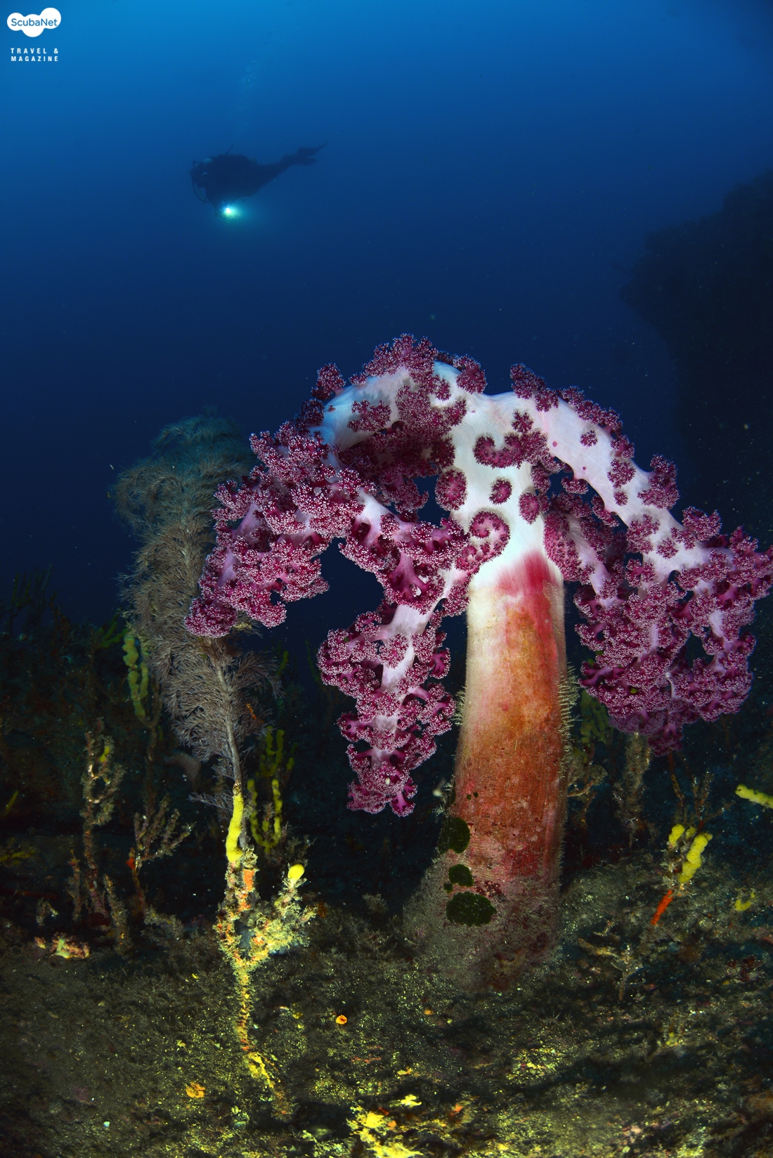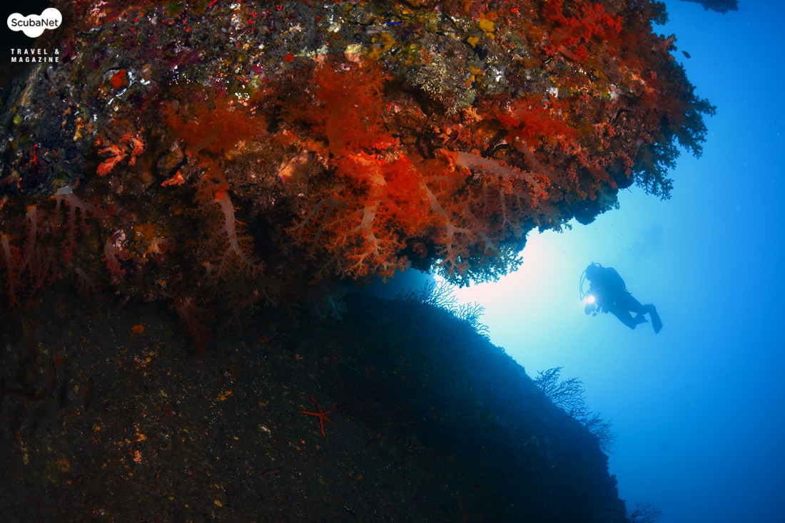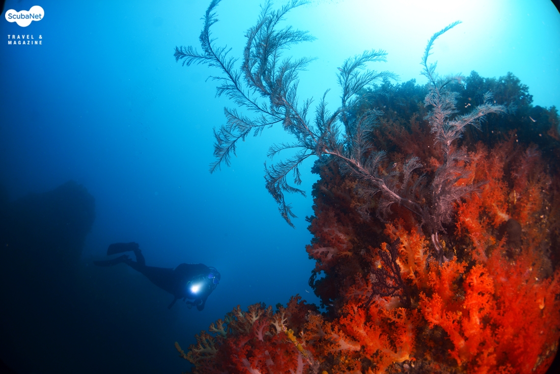 태풍 뒤에 비교적 시야가 나아져 수면에서 바닥의 다이버들이 다 보였다카메라의 침수 때문에 오랜만의 촬영 다이빙이었는데 다행히 시야는 좋았고, 수온도 24℃나 나왔다. 올해 부화된 자리돔 치어들이 가득했고, 분홍바다맨드라미들이 폴립을 활짝 펼치고 있었다. 봉우리 사이의 계곡에 자리잡은 분홍바다맨드라미 군락과 그 위로 솟아오른 백송이 멋진 피사체가 되어 주었다.