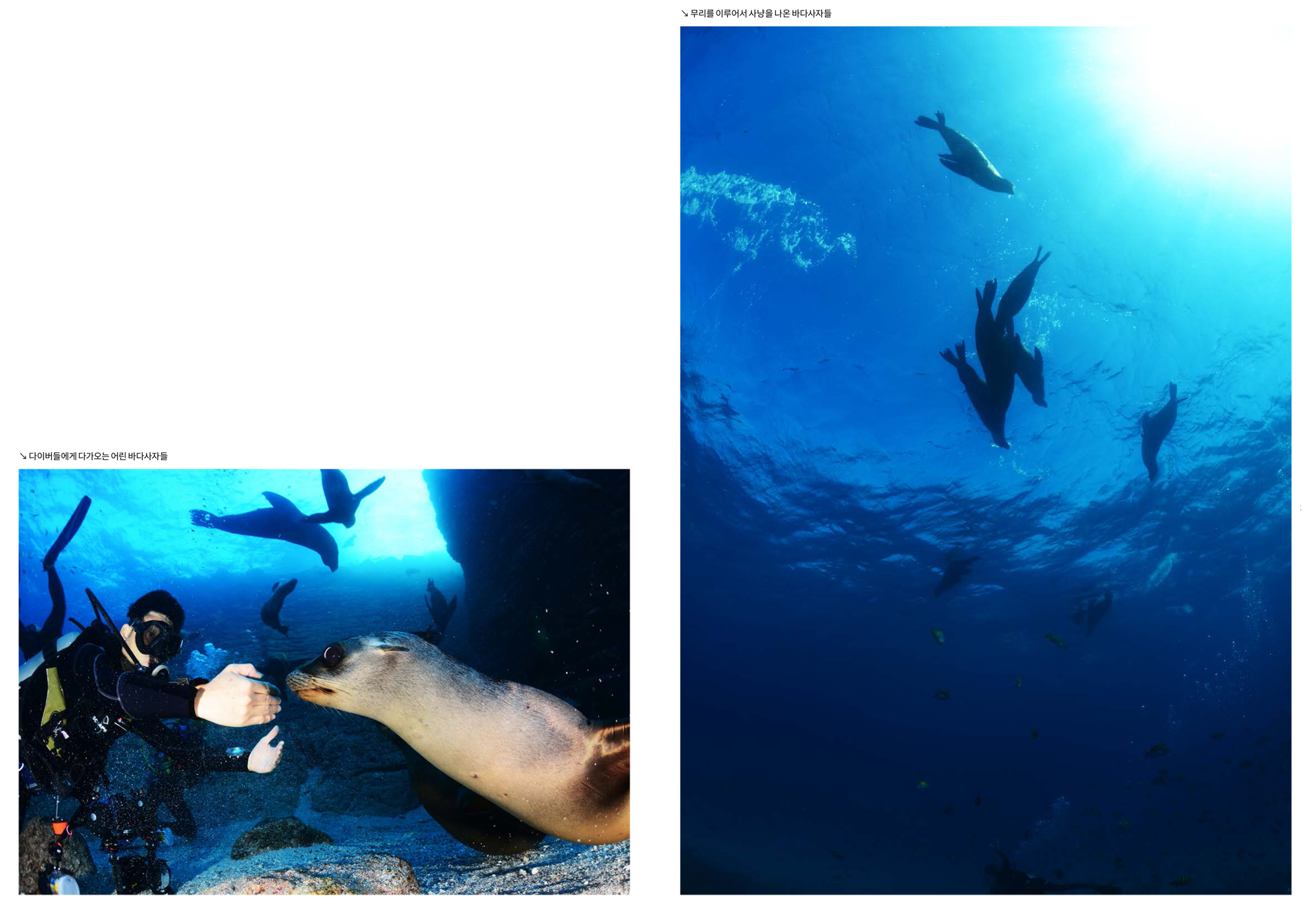 장난스러운 표정으로 다이버를 쳐다보는 바다사자