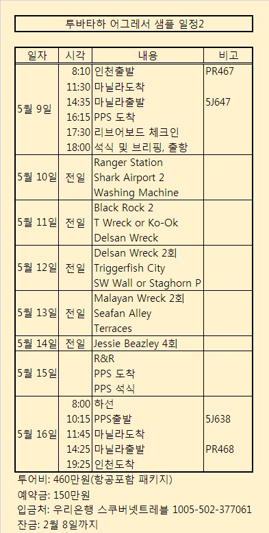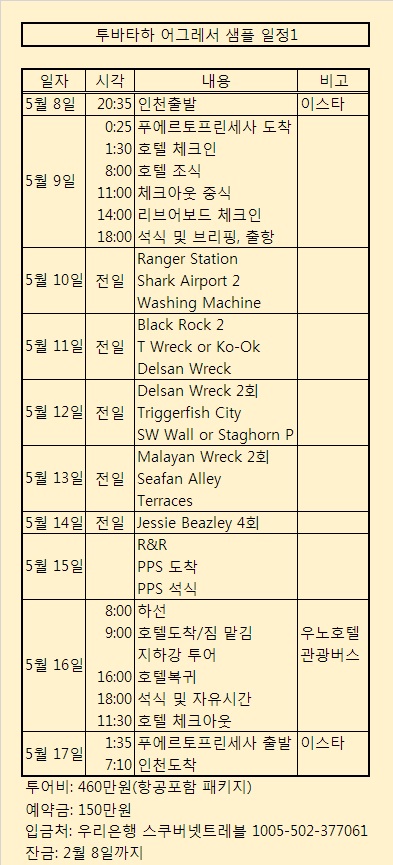 스쿠버넷진행 풀패키지: 리브어보드+항공 460만원
