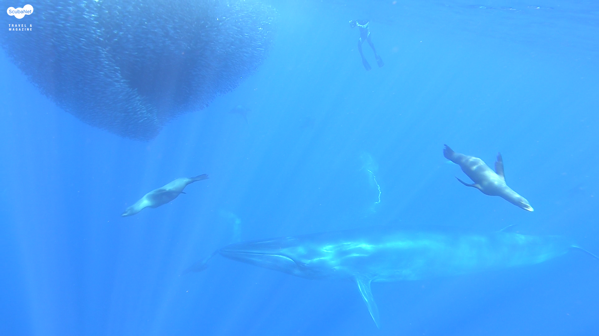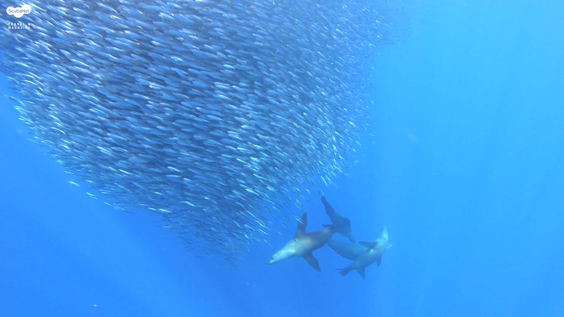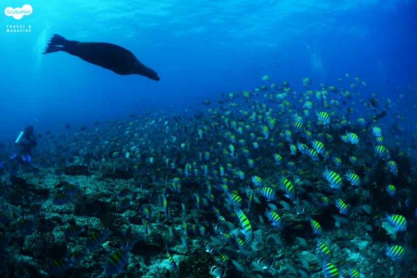 물고기를 쫓아다니는 바다사자들과 이를 피해다니는 물고기들의 군무를 볼 수도 있습니다.