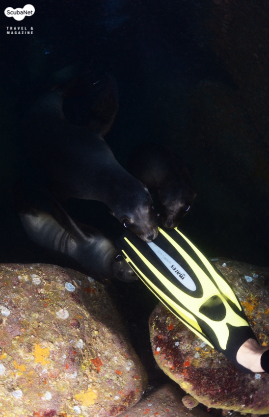 다이버들에게 먼저 접근하는 어린 바다사자들은 마치 어린 강아지들처럼 앙증맞고 귀엽습니다.