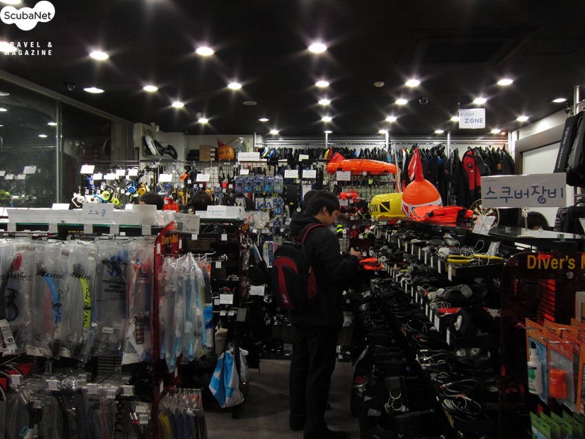 세미나가 끝난 후에는 참새가 방앗간을 그냥 지나갈 수 없듯 많은 다이버들이 매장에 들러 물건을 살펴보고 상담을 하기도 했다. 매장 재배치 후, 보다 많은 제품이 보기 편하게 진열되어 있었다.