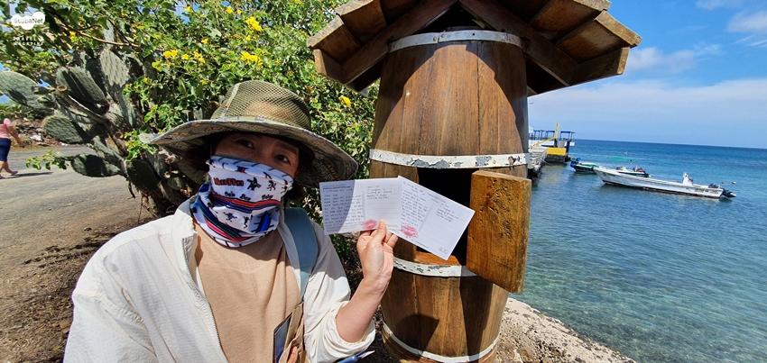 위치는 북쪽의 포스트오피스 베이 Post Office Bay지만 관광객들을 위해 벨라스코 이바라 항에도 우편함을 만들어 놓은 것이었다. 갈라파고스에서 엽서를 부치고 싶었던 일행 중 한 명은 여기에 엽서를