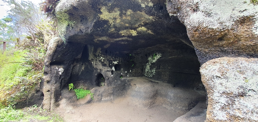 바위를 파서 굴을 만들어 은신처로 사용했던 흔적