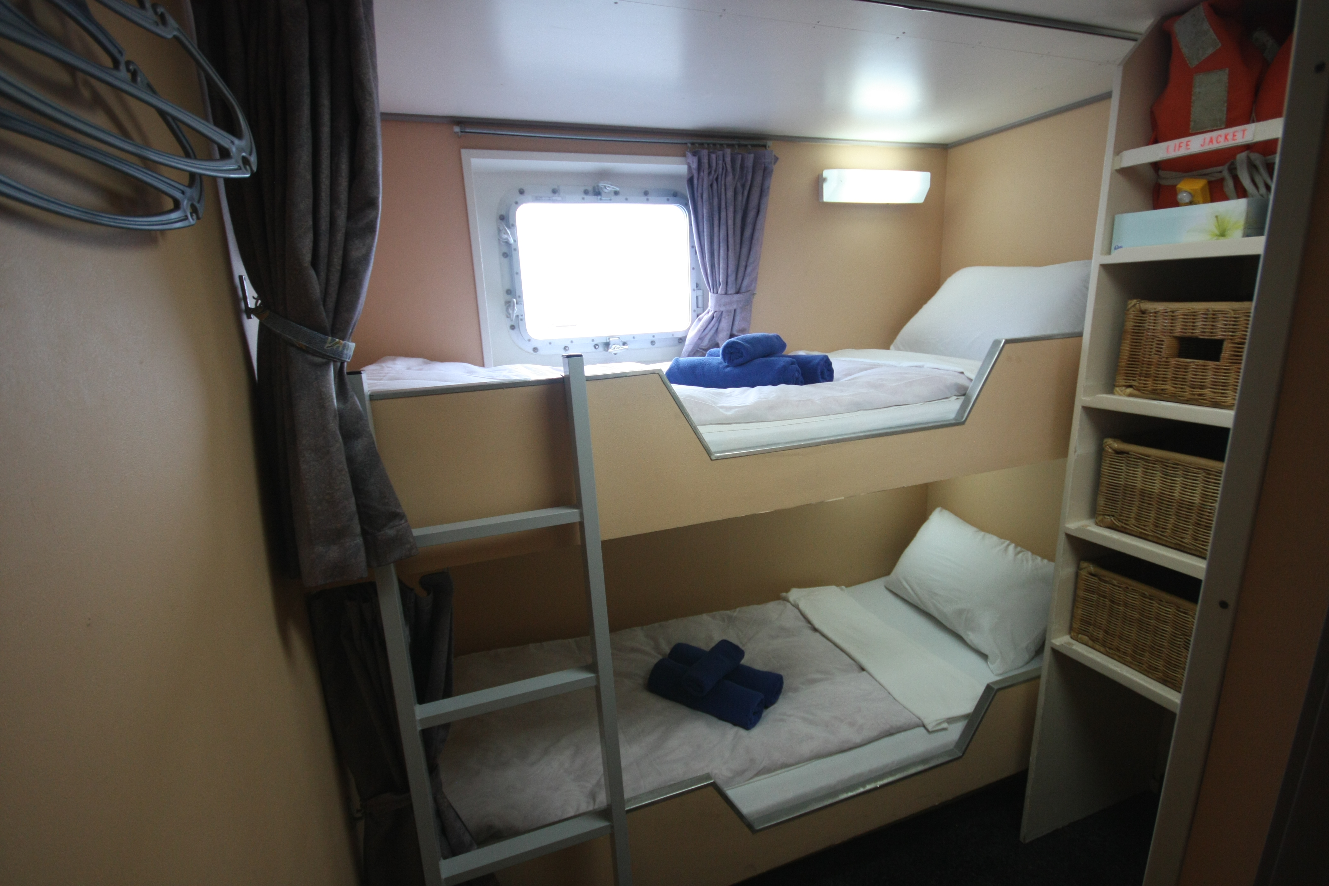 팔라우스포츠는 최대 승객 정원 25명으로 2인실 8개, 4인실 3개의 객실은 모두 샤워/화장실이 내부에 있습니다. 펜데믹 기간 동안 인도네시아의 도크에서 전체 수리를 하고 다시 취항하게 되었습니다.