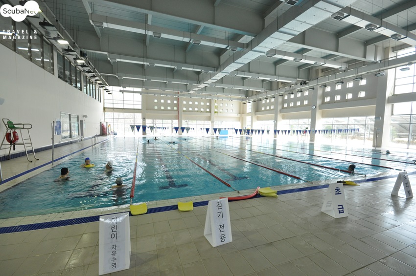 요즘 지자체들에서 스포츠센터를 건축하면서 스쿠버풀이 같이 들어가고 있는 경향이 있다. 그중에 하나가 양평군에 있는 용문국민체육센터이다. 총사업비 97억원을 들여 지난 2011년 7월 1일에 개관해 코오롱 스포렉스에서 민간위탁 운영하고 있는 곳이다. 서울의 PSI 스쿠버(대표 김정미)에서 숍을 내고 스쿠버 풀을 이용한 교육을 진행하고 있다. 용문국민체육센터는 연면적 4981m2에 지하 1층~지상 3층으로 구성된 건물로 1층에는 25m 8레인의 수영장과 스쿠버교육용 풀, 유아풀, 냉온탕, 편의점, 스포츠용품점, 스쿠버 숍이 있고, 2층에는 헬스클럽, 에어로빅, 유아체능실, 어린이놀이터, 식당이 있으며, 3층에는 500명을 수용가능한 다목적 체육관과 스쿼시 장 그리고 관리사무실과 교육실로 사용할 수 있는 회의실 등이 있다. 양평군에서는 용문국민체육센터의 건립으로 상대적으로 열악했던 동부권의 체육 인프라가 확충되면서 지역민들에게 한 단계 업그레이드된 여가 문화기반을 제공할 것으로 기대하고 있다.코오롱스포렉스 양평점에서는 현재 센터 내에서 진행되는 스킨스쿠버 다이빙 프로그램은 PSI 스쿠버(대표 김정미)를 통해서 진행하고 있으며, PSI 스쿠버는 센터 1층에 스쿠버 숍을 오픈하여 교육상담을 진행하고 있다. 스쿠버 풀은 수심 6m에 가로 6m, 세로 10m 규모로 오픈워터 교육을 진행하기에 충분하며, 3층 회의실을 통해 이론교육을 실시할 수 있다. PSI 스쿠버에 따르면 인근의 펜션을 이용하여 이곳에서 1박 2일의 집중교육으로 수영장 교육까지 마치고, 속초로 가서 나머지 1박 2일을 진행하면 오픈워터 다이버 과정을 집중적으로 진행할 수 있다고 한다. 센터 이용시간은 오전 6시~오후 9시이며, 둘째 주 수요일과 넷째 주 목요일은 휴관이다.