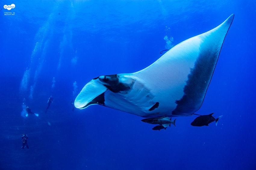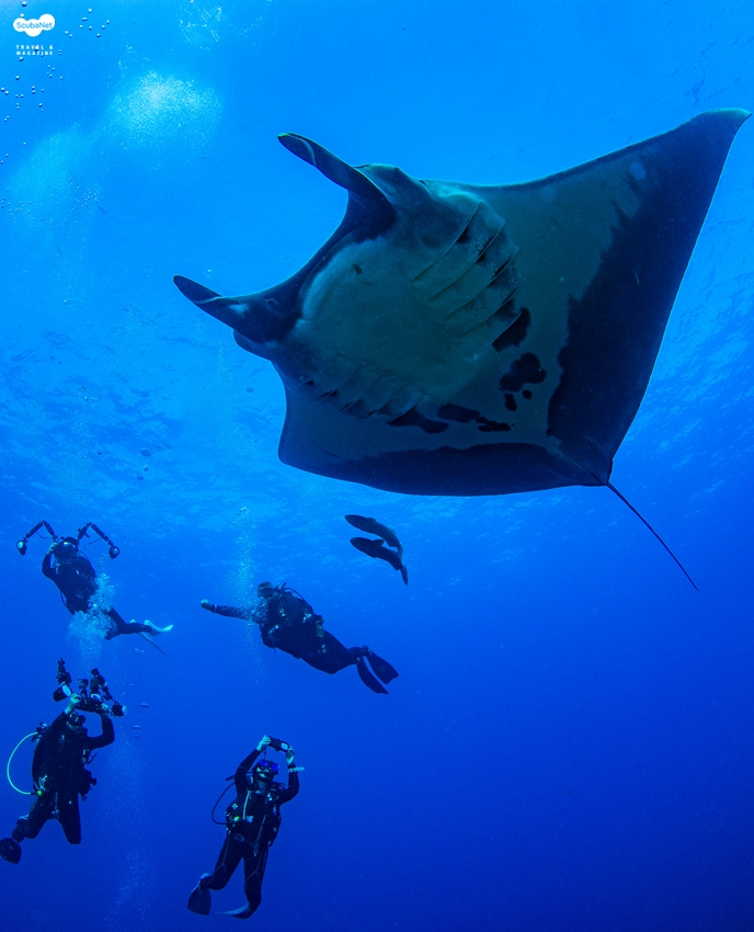 이번에 소코로에서 6일 다이빙하는 동안 만타가오리는 거의 매일 만났다. 소코로에 출현하는 만타가오리는 전부 오셔닉 만타가오리 Mobula birostris로 크기가 6m 내외로 대형이다. 이들은 모두 같은 종이지만 2가지 패턴이 있는데 쉐브론만타와 블랙만타이다. 쉐브론만타는 등의 머리 뒤쪽과 날개 끝에 흰색이 있고, 흰색의 복부에 부분적으로 검은 반점이 있고, 가슴지느러미 뒤쪽이 회색을 띤다. 만면 블랙만타는 전체적으로 검은데 등이 완전히 검고, 복부도 아가미 근처만 흰색이 조금 남아 있는 정도이다.