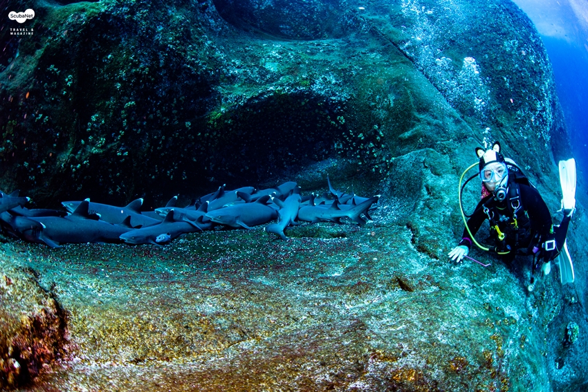클리닝스테이션에서 확실하게 볼 수 있었던 것은 갈라파고스상어와 실버팁상어였다. 엘 캐년의 클리닝스테이션에는 항상 상어들이 서너 마리 이상 선회하고 있었는데 이 둘은 지느러미의 테두리가 흰색을 띠는 실버팁상어로 인해 확실히 구별되었다.