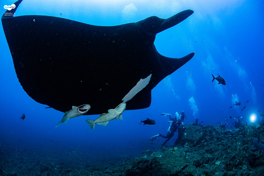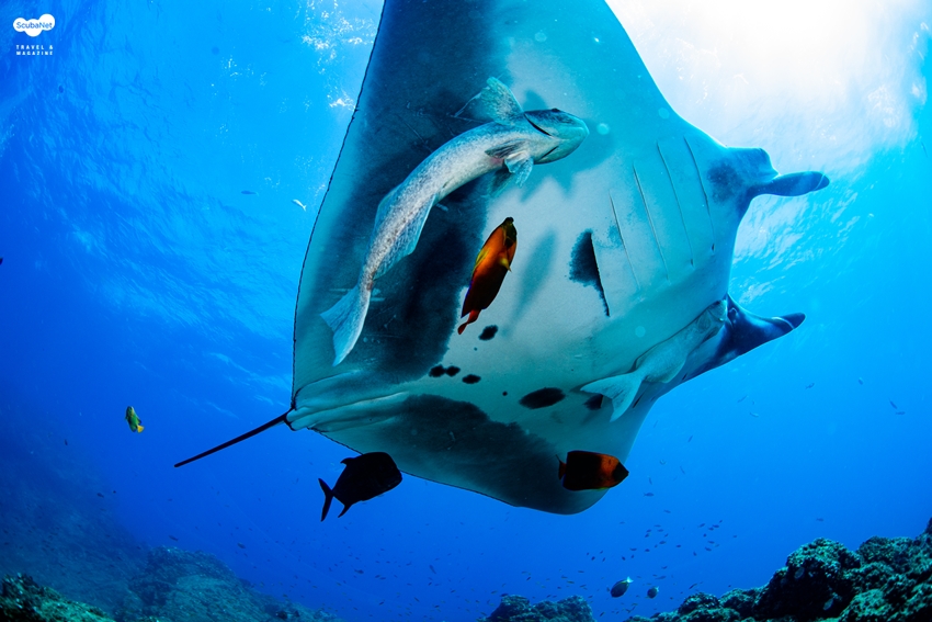 덕분에 이번에 만타가오리를 매우 가까이서 관찰하며 촬영할 수 있었는데 만타와 공생하는 레모라들까지도 근접 촬영이 되었다.