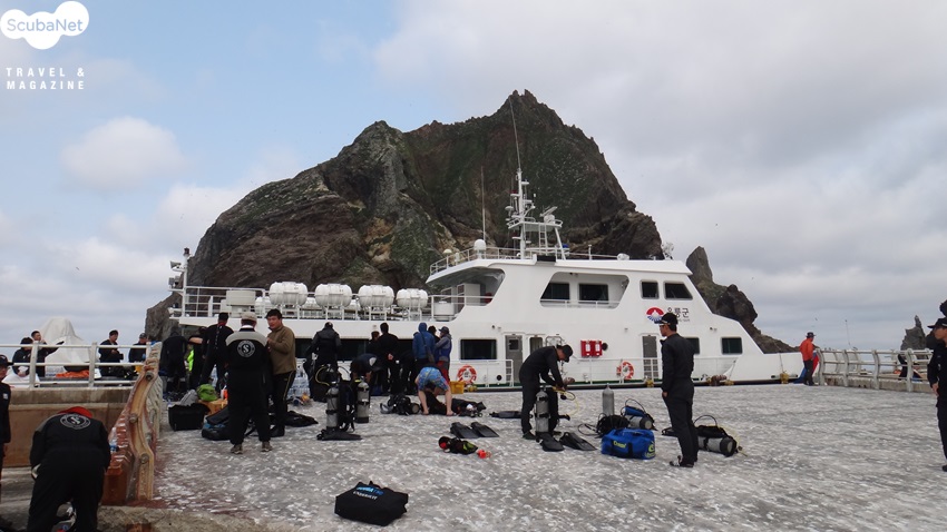 독도 선착장에서 다이빙을 준비 중인 SSI 패밀리 투어 참가자들