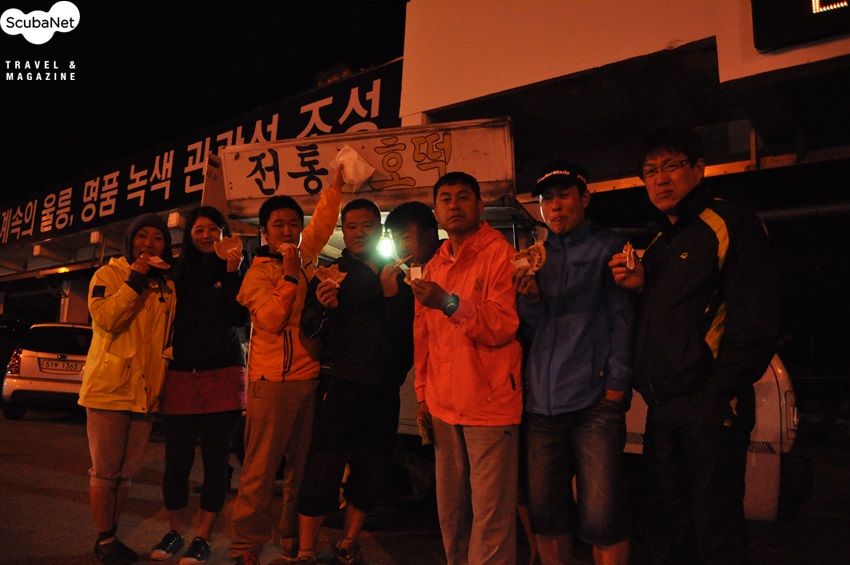 성공적으로 독도 다이빙을 마치고 울릉도로 돌아와 호떡집 앞에서