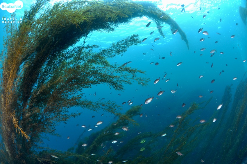 제주의 봄 모자반 군락의 자리돔(제주문섬 작은섬)