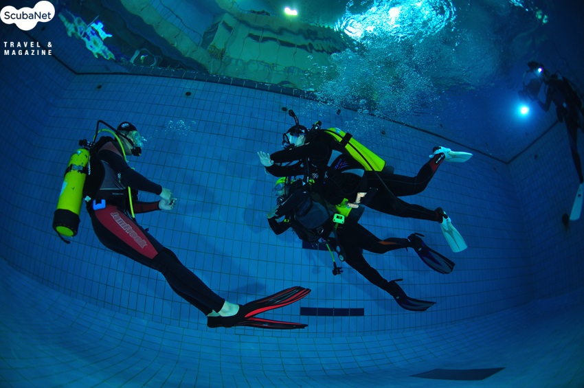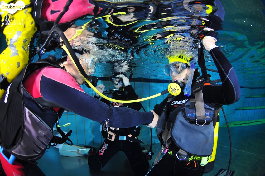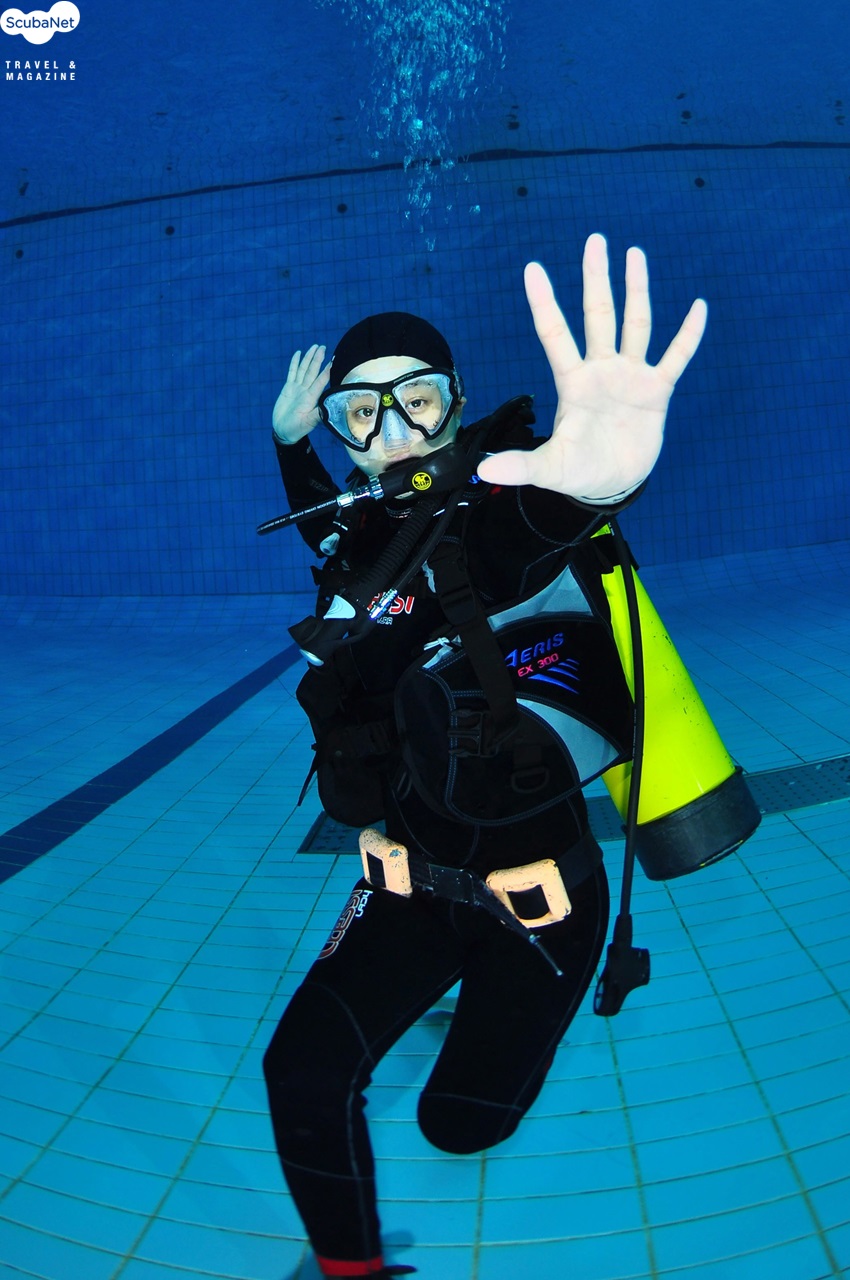 궉채이 양과 김경수 씨의 스쿠버 다이빙 교육은 아쿠아마린의 김진관 PADI 코스디렉터가 직접 진행하였으며, 수영장 실습은 잠실 스쿠버풀을 이용하였다. 수영장 실습에서는 첫날 장비의 세팅과 물에 대한 적응, 얕은 풀 교육, 하강과 상승, 깊은 풀 교육 등으로 진행되었는데 호흡기 찾기, 마스크 물빼기, 이퀄라이징 등을 배웠으며, 둘째 날에는 첫날의 복습을 한 다음에 스킨다이빙과 핀 피벗팅, 하버링, 웨이트 탈착, 장비탈착, 수중유영, 자유하강과 상승 등이 진행되었다. 운동선수 출신들이라 이들은 누구보다 빨리 스쿠버 다이빙에 익숙해졌으며, 스스로 잘될 때까지 연습을 게을리하지 않는 적극성을 보였다. 궉채이 양은 오는 7월 세부에서 오픈워터 해양실습을 진행할 계획이라고 한다.