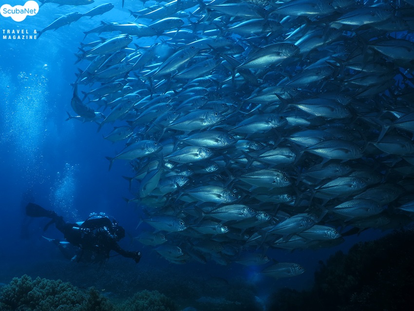 이튿날 첫 다이빙은 전날 눈으로만 구경했던 잭피쉬 무리를 담기위해 다시 블랙코랄 포레스트를 찾았지만 만날 수 없었다. 먹이활동을 위해서 주로 오전에 놈들이 모여들기 때문에 90% 이상의 확률로 만날 수 있다는 현지 가이드의 이야기는 필자에게 해당되지 않았다. 이후로도 두 번을 더해 총 4차례 입수했지만 단 두 차례만 놈들을 만날 수 있었는데 카메라에 담을 기회는 그중 3번째 다이빙에서였다. 입수 후 얼마 지나지 않아 놈들의 군무를 발견했고 천천히 호흡을 가다듬으며 접근하였다. 무리 밑으로 파고들어 대열을 깨트리지 않는 범위 내에서 연신 셔터를 누르며 놈들과 하나가 되어 한참을 보냈다.무리에서 조금 벗어나 놈들의 형태를 관찰하던 중 점잖게 무리주변을 지나던 거북을 발견했고, 놈의 옆으로 다가가서 함께 역영을 펼치며 잭피쉬 무리와 다이버를 배경으로 거북을 촬영해 보았다. 거북이 워낙 빨라서 가까스로 세 차례 셔터를 누를 수 있었고 그중 하나는 초보인 나에게는 만족스러운 결과였다. 거북을 보내고는 잭피쉬 무리를 조금 더 촬영하고 얕은 곳으로 이동해서 수면 위의 방카보트를 주제삼아 하늘에서 내려쬐는 햇살을 담는 연습도 해보았다. 10.5mm 렌즈로 조리개 값을 22까지 최대로 조이고, 스트로브를 꺼서 셔터스피드를 1/250까지 올려봤으나 햇살의 방향이 일정간격으로 예쁘게 쪼개지지가 않았다. 어디서 본건 있어서 따라해 보려했지만 좀처럼 쉽지가 않았다.황당했던 사실은 필자의 스트로브는 싱크로 케이블로 카메라와 동조가 이루어지는 방식인데 광케이블을 위한 연결부분을 캡으로 막아놓지 않아 주변에서 다른 스트로브가 발광하면 함께 발광을 했던 것이다. 이러한 이유를 이틀간이나 모르고 있었기에 다른 다이버가 촬영할 때 모델을 서주었던 사진들을 보다보면 필자의 양쪽 스트로브가 발광된 사진을 볼 수 있었다. 세 번째 날은 카테드랄(cathedral) 포인트에 입수했고 이곳에서는 회초리 산호뿐만 아니라 여러 가지 수중생물을 촬영할 수 있었다. 똑딱이 카메라를 들고 다닐 때는 수중에서 회초리산호를 발견하면 그냥 지나치는 경우가 대부분이었다. 그러나 얼마 전 아닐라오에서 수중사진가 한분이 회초리 산호를 촬영하고 있을 때 우연히 주변을 지나다 모델을 해주었는데 나중에 그 사진을 보고 까칠하지만 정렬적인 짙고 어두운 붉은색의 회초리산호에 매료되었던 기억이 있다. 회초리산호를 멋지게 담아보려 애써봤지만 쉽지가 않았고 모델 또한 없었던지라 분위기를 살리지는 못하였다. 이외에도 다양한 산호들과 물고기들을 담아볼 수 있는 포인트였다.