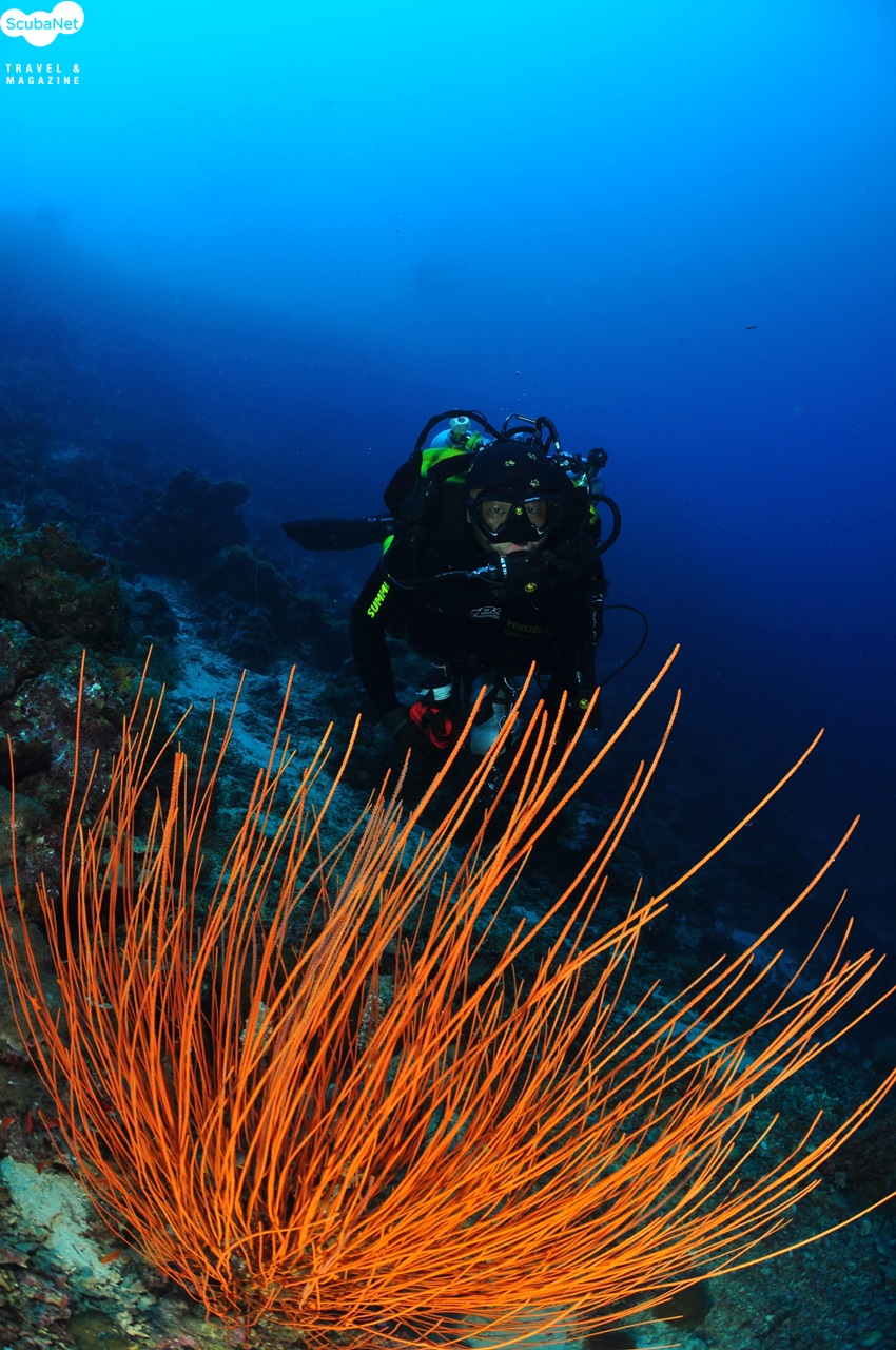 올랑고 섬과 힐루퉁안 섬의 MK6 다이빙막탄 특유의 월 다이빙으로 진행된 올랑고 섬의 탈리마 포인트와 힐루퉁안 섬의 마린 상투아리(Marine Sanctuary) 포인트는 MK6 재호흡기 다이빙을 즐기기에는 그만이었다. 적당한 조류를 타고 흘러가면서 원하는 수심을 30m 내외에서 유지하다가 점차적으로 상승하면서 1회에 60분간의 다이빙을 진행했는데 교육목적의 다이빙이 아니었다면 40m의 수심 한계와 MK6의 컴퓨터가 제시하는 무감압 한계시간 내에서 얼마든지 수심과 시간을 연장하며 다이빙할 수 있을 것 같았다.이미 교육과정을 마친 필자는 월을 타고 40m까지 내려가기도 했지만 감압이나 질소마취 등에 대한 부담 없이 아주 편안하게 다이빙을 진행하며 함께 한 일행들의 모습을 수중카메라로 담을 수 있었다.
