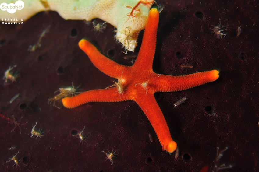 해면 위의 애기불가사리와 대벌레, 등각류  등의 갑각류들이 보이다.