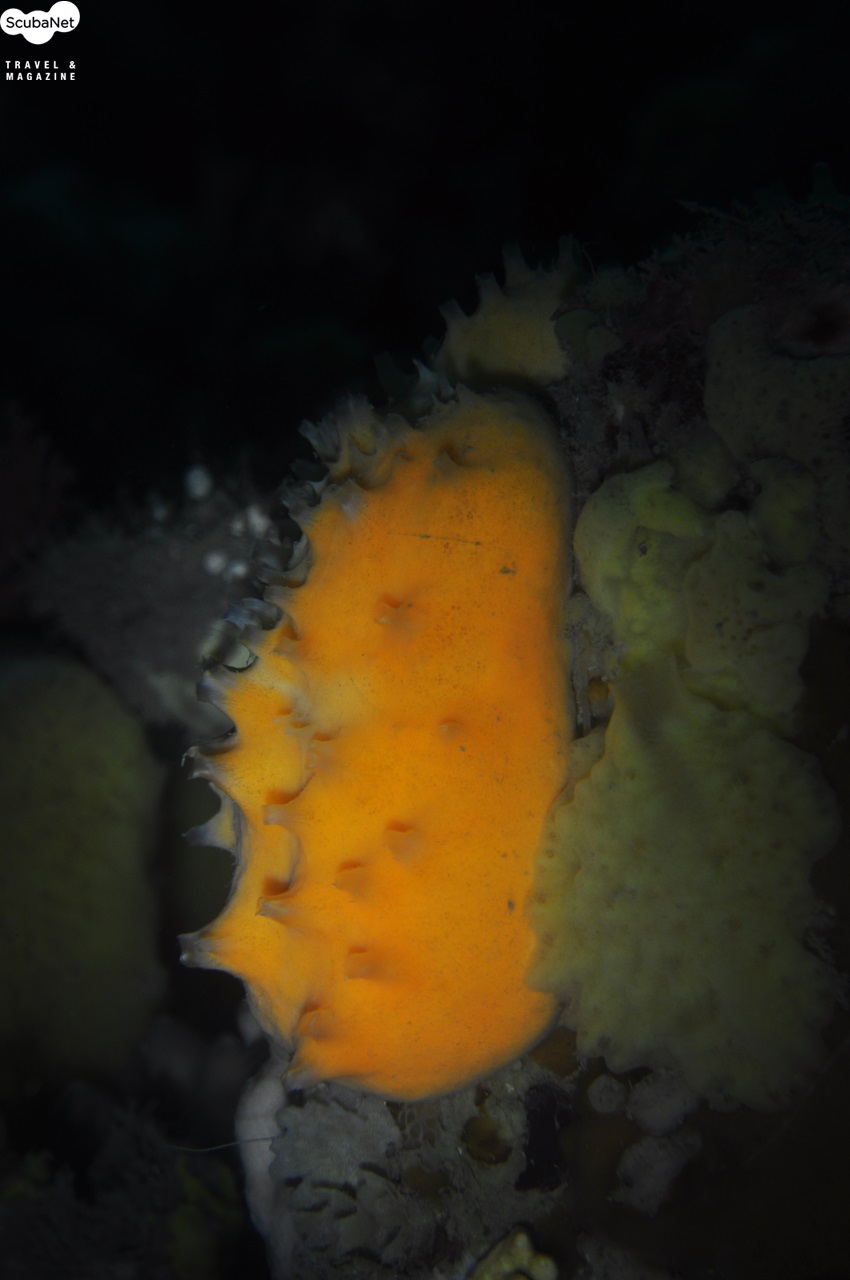 가거초의 암반을e 화려하게 수놓고 있는 노란해면과 밤수지맨드라미, 가는바늘산호.