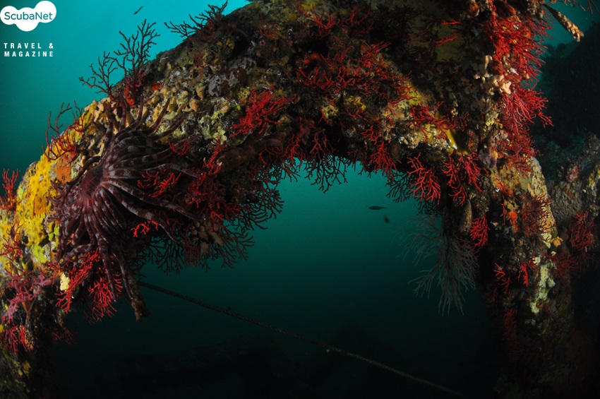 수심 약 24m에 옆으로 45° 정도 누운 커다란 난파선이 놓여있고, 난파선 후미에서 약간 이동하면 철제구조물이 있다. 마찬가지로 난파선 선수 쪽으로도 커다란 철제 구조물이 놓여 있는데 이쪽에는 벤치와 테이블도 마련되어 있어 버디들끼리 재밌는 연출사진을 찍으며 추억을 남기기에 좋아 보였다. 난파선은 아직 부착물이 완전하게 붙지 않아 몸체의 색이 드러나 있었고 웅장한 크기로 압도했다. 난파선 안쪽으로는 커다란 장어와 놀래미를 볼 수 있었다. 난파선 앞뒤로 있는 구조물 안에 들어서니 얼기설기 놓인 철근과 밧줄, 그물이 어린 시절 놀던 정글짐 안에 들어온 듯한 느낌을 들게 했다. 철근에는 노란 해면들이 조금씩 자리를 잡고 있었고 구조물 상단부에서는 줄돔과 망상어들이 마치 자기네 놀이터인 냥 즐거이 헤엄치고 있었다.