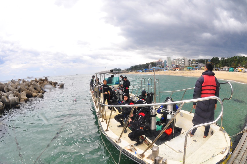 가을비가 부슬부슬 내리는 한적한 월요일 오전, 강릉에 위치한 경포다이브리조트를 찾았다. 굳은 날씨의 평일임에도 예상보다 많은 다이버들이 경포에서 다이빙을 즐기고 있었다. 부슬비와 함께 바다는 거칠게 일어났다가 가라앉기를 반복했다. 바다가 잔잔한 틈을 타 경포의 대표적인 포인트인 해중공원과 꽃동산 포인트에서 2회 다이빙을 즐겼다.경포다이브리조트는 아름다운 해변과 깔끔한 숙소와 편의시설, 젊고 친절한 스태프들 등으로 젊은 다이버들 사이에서 인기가 좋은 곳이다. 날씨가 궂었던 탓에 아름다운 해변을 제대로 즐기지 못해 아쉬웠지만 테트라 포트 안쪽으로 수심이 얕고 잔잔한 바다에서 반수면 사진을 찍으며 즐거운 시간을 보냈다. 날씨가 좋은 여름날이면 다이빙 후 비치에서 태닝을 하거나 물놀이를 하고 야영을 하기에 안성맞춤일 것이다. 비치에서 도로만 건너면 바로 리조트이니 이동도 편리하다. 리조트는 아기자기한 소품들과 따뜻한 난로, 군고구마, 귀여운 손글씨의 메모보드 등으로 세심하고 정겹게 꾸며져 있었다. 리조트 스태프들과 방문하는 다이버들의 리조트에 대한 애정이 엿보였다. 하지만 아무리 해변이 아름답고 리조트가 좋다고 해도 다이브 리조트의 생명은 역시나 다이빙 포인트일 것이다. 경포에서 자랑하는 난파선 포인트인 해중공원, 인공어초와 난파선을 함께 볼 수 있는 꽃동산 포인트를 찾았다. 그리고 그 결과는 역시나, 사람들이 많이 찾고 한번 갔던 사람들이 여러 번 반복해서 찾는 데는 그만한 이유가 있을 수밖에 없다는 것을 확인했다.