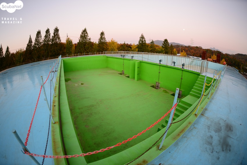 대형수조. 여기에 세트를 설치하고 물을 한꺼번에 쏟아 넣어 해일, 홍수,폭풍 등의 재난현장을 구현한다.