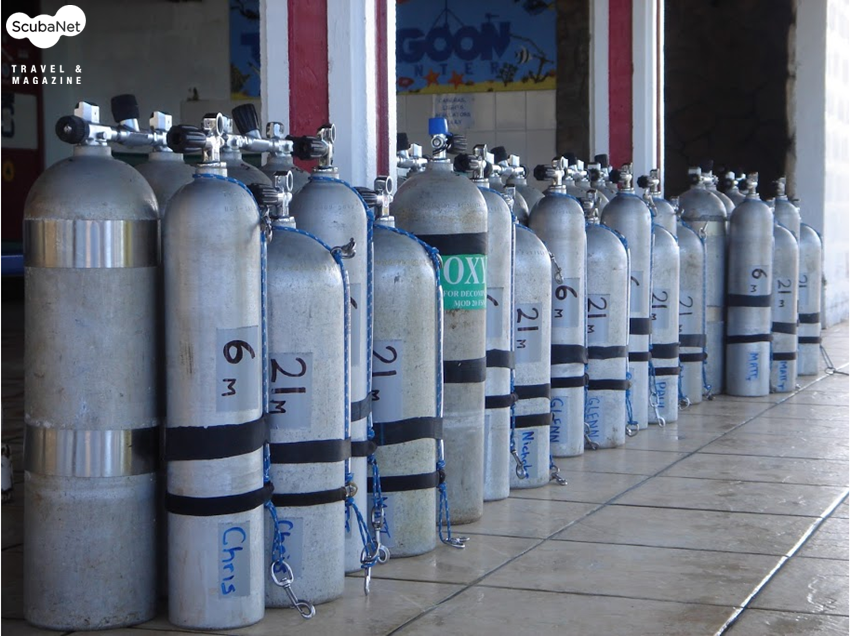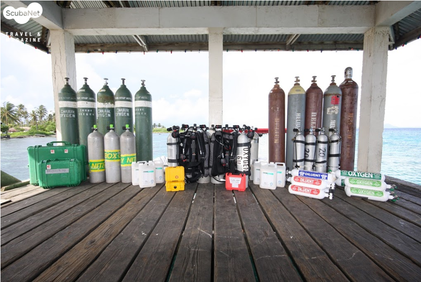 트럭라군에서는 더블탱크, 스테이지탱크, 나이트록스, 헬륨, 재호흡기용 소다라임 등을 보유하고, 모든 다이빙을 지원하고 있습니다.