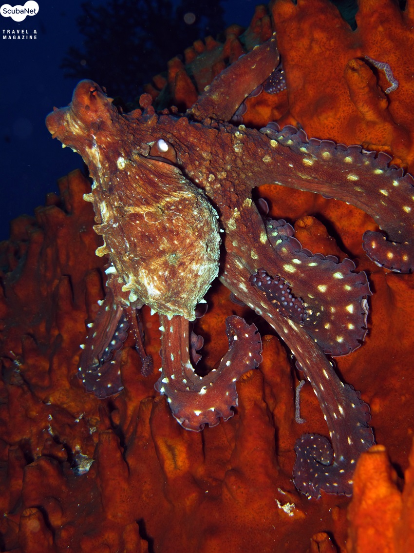 해면 위를 지나 짝짓기를 하러가는 문어