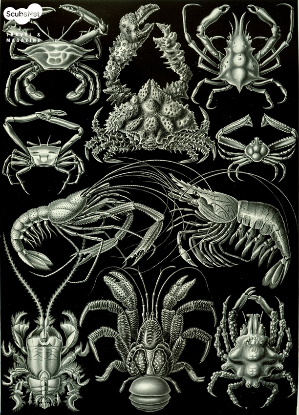 십각목(Decapoda)에 속하는 종류들(그림출처 1904년 Ernst Haeckel의 “자연의 예술적 형상들”에서)