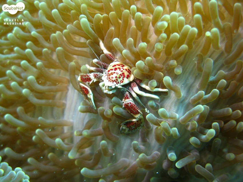 말미잘과 공생하는 껍질이 도자기처럼 매끈한 자기게(Porcelain crab, 좌; 필리핀 사방, 우; 필리핀 까빌라오)