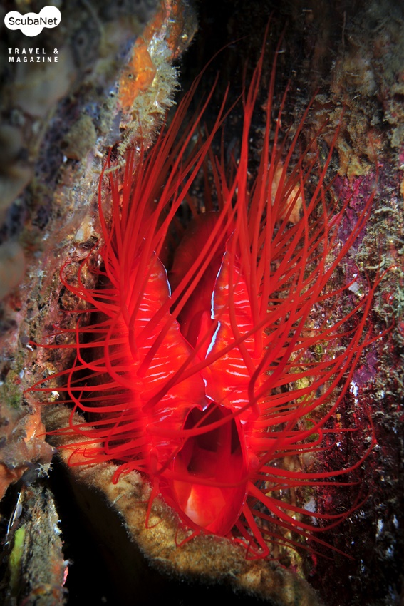 수심 약 5~6m 암벽 사이에서 무한전기를 내보내던 전기가리비(Electric flame scallop)를 가까이에서 보며 카메라에 담았던 느낌은 지금도 나를 미소 짖게 한다. ^^ 출발 전에 급조한 필터 시스템을 이용해서 촬영도 해보며 아무튼 1회의 다이빙에 좀 더 많은 것을 보고 느끼려 가이드 뒤를 졸졸 따라다니면서 목이 빠져라 두리번거리기도 했던 기억이다.