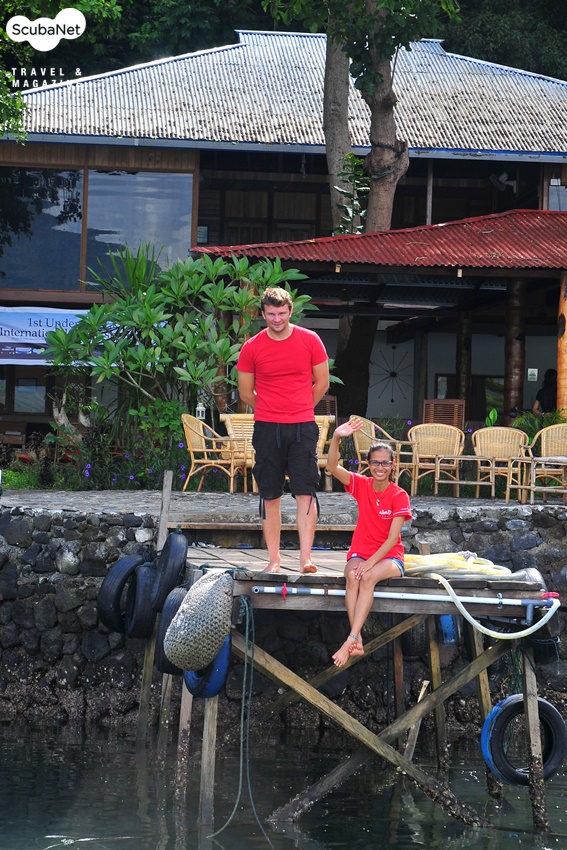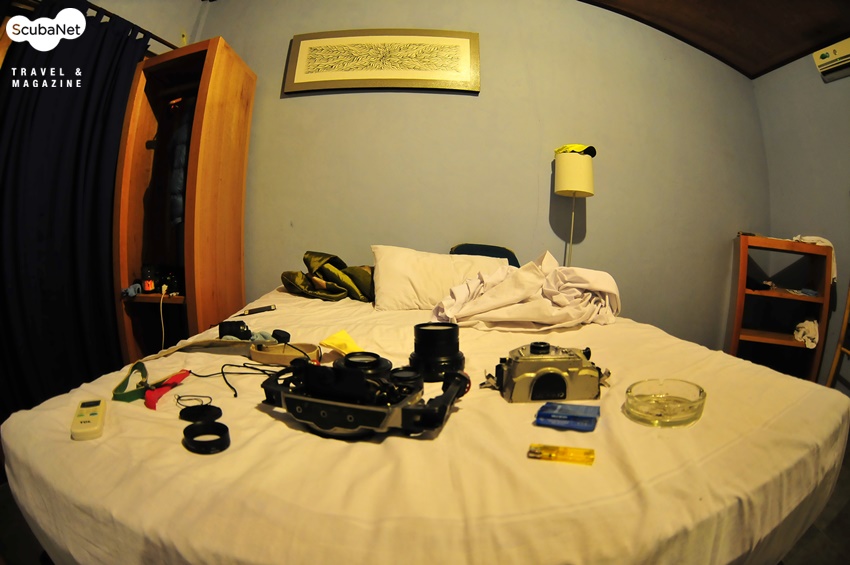 렘베 NAD 리조트의 모습은 오목하게 휘어져 들어간 만의 형태를 하고 있으며 뒤로는 야자수며 나무들이 빼곡하고 북서쪽을 바라보고 있는 아담한 풍경이다. 각국의 다이버들이 모여 있었는데 하루 먼저 도착한 팀도 있었으며 우리 일행이 마지막으로 각자 숙소를 배정받아서 2 인 1 실의 형태로 짐을 풀어 놓았다.