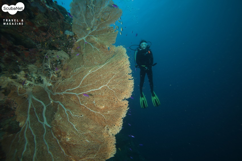 팡라오 섬에서 발리카삭 섬 까지는 방카 보트로 30분 정도 걸리지만 리조트의 배가 고장이 나서 작은 배로 이동 하느라 50분 이상 걸렸다. 첫날 다이빙은 다이버스 헤븐의 절벽을 따라 25 m의 수심에서 하였는데 이날 다이빙을 마치고 나는 너무 실망하였다. 이 정도의 월 다이빙은 이렇게 힘들게 오지 않고 모알보알만 가도 지척에 널려있고 가격도 훨씬 싸다.