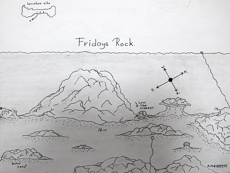 18m 수심의 모래지역에 10m 정도의 커다란 바위(암석)이 솟아 있는 곳이다. 바위에는 풍부한 해양생물들이 살고 있는데 바위 위쪽에 20여 마리의 큰 농어들이 무리지어 있는 모습이 장관이다. 써전피쉬, 엔젤피쉬, 담셀피쉬 등이 항상 주변을 돌고 있고 그밖에 트리거피쉬, 라이언피쉬, 곰치, 카디널피쉬, 만티스 쉬림프 등을 볼 수 있다.