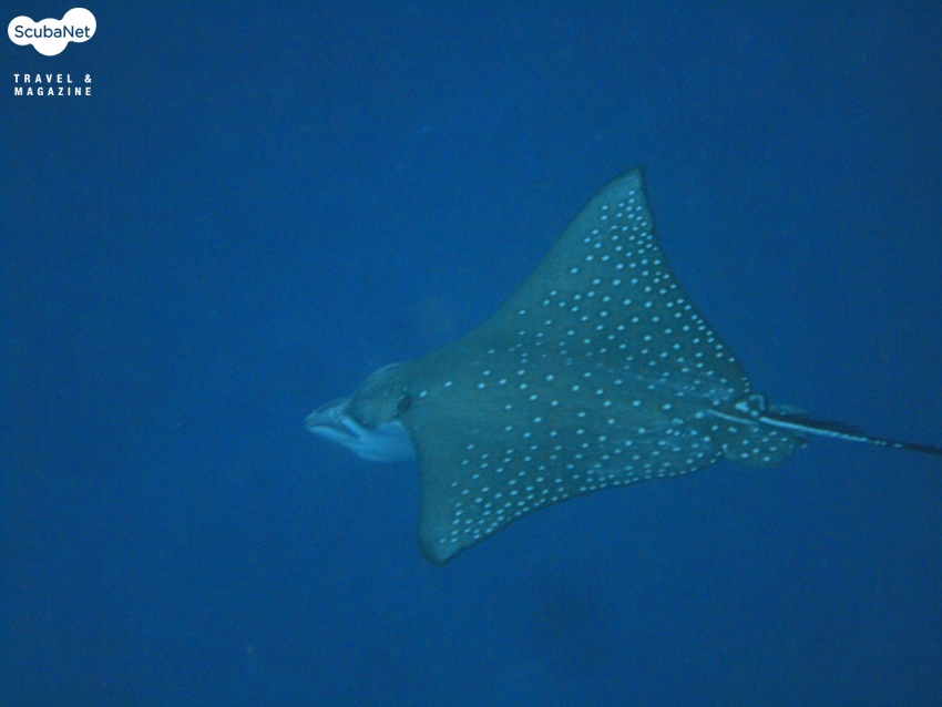 사냥을 즐기는 매가오리매가오리는 서양에서는 이글레이(Eagle ray, 독수리가오리)라 불리는 종이다. 영어로 된 일반 명칭을 우리말로 옮길 때 ‘매’라는 이름을 붙여 매가오리가 되었다. 쥐가오리는 성격이 온순한데다 사는 곳이 일정해 스쿠버 다이버들이 어렵지 않게 발견할 수 있지만, 매가오리류는 사냥을 즐기는 육식종으로 겉모습부터가 날렵하게 생겼고 넓은 지역을 이동하며 다니는 종류이다. 국내에서는 흑산도에서 종종 관찰되기도 한다.