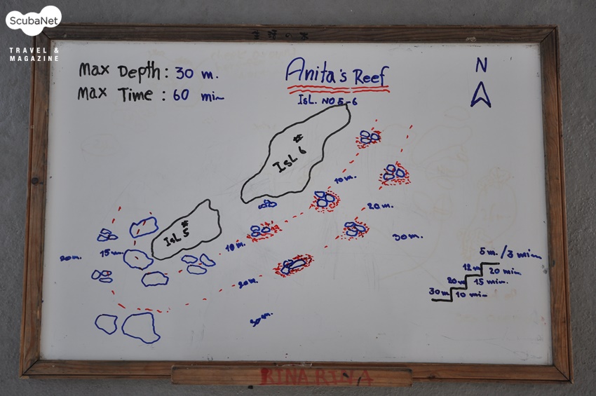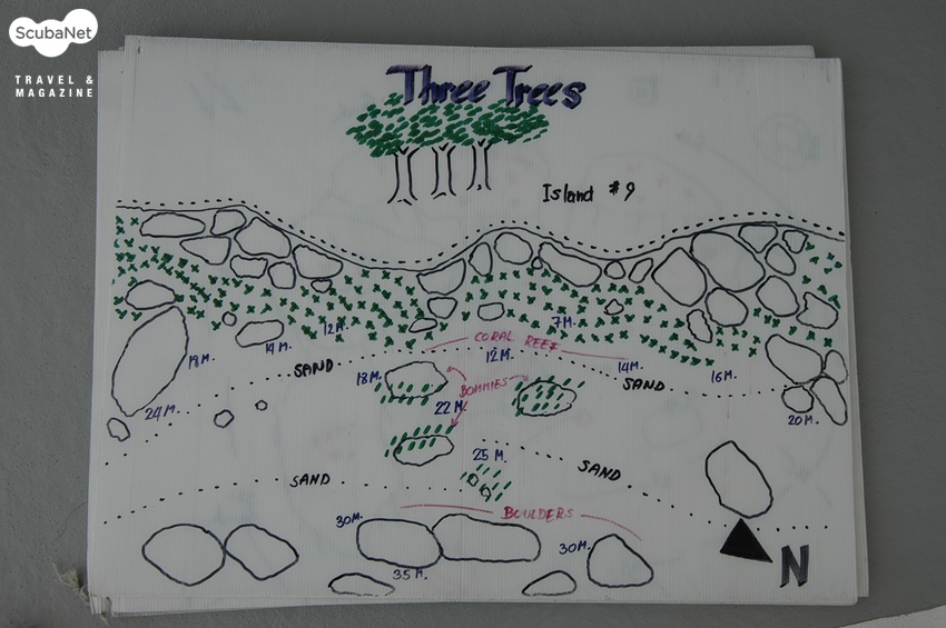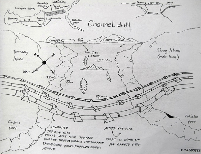 다이빙 사이트의 수중지도 그리기Diving site mapping.