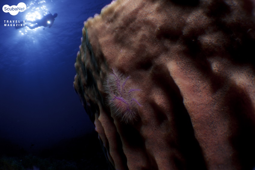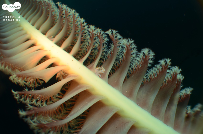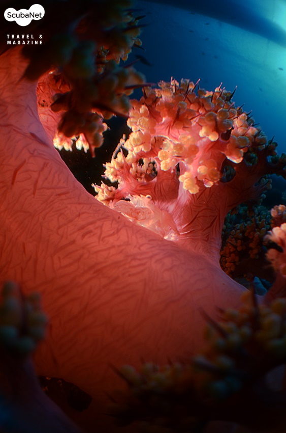 그리하여 다양한 주제를 선택할 수 있는 광각 촬영을 할 수 있었다. 이런 방법은 광각렌즈를 이용한 마크로 촬영이기 때문에 마크로 와이드라는 말을 쓰는 것 같다. 그리고 최근 들어 이논에서 출시한 60mm 접사렌즈에 어댑터 렌즈 (UFL-MR130 Fisheye Relay Insect Eye Lens) 를 출시하여 졉사렌즈를 이용한 와이드촬영을 가능하게 되었다, 그래서 마크로 렌즈를 이용하기 때문에 와이드 마크로 라고 일컫는 경향이 있는 것 같다. 그러나 이런 종류의 사진을 찍는 작가는 아직 아주 소수이기 때문에 확립된 용어는 아닌듯하다. 필자의 몇 년 된 이 기법의 촬영 술의 경험으로 볼 때 몇 가지 해결해야 되는 문제는 1) 백스케터(특히 마크로 와이드일 경우 ) 2)노출--주제와 배경의 어울리는 노출 3) 포트의 선택 4) 핀을 어디에 중점을 둘 건지 5)좀 더 깊은 심도 확보를 위한 방법.5) 배경에 다이버 모델을 쓸 경우 구도문제 (작은 피사체라 굉장히 어려움) 등의 여러 가지 당면한 문제를 해결해야 하는데 다음 기회에 기회 있을 때 하나씩 이야기했으면 힌디. 사진은 몇 년 전 부터 몇 가지 서로 다른 렌즈를 통하여 촬영한 마크로 와이드 혹은 와이드 마크로 사진이다.