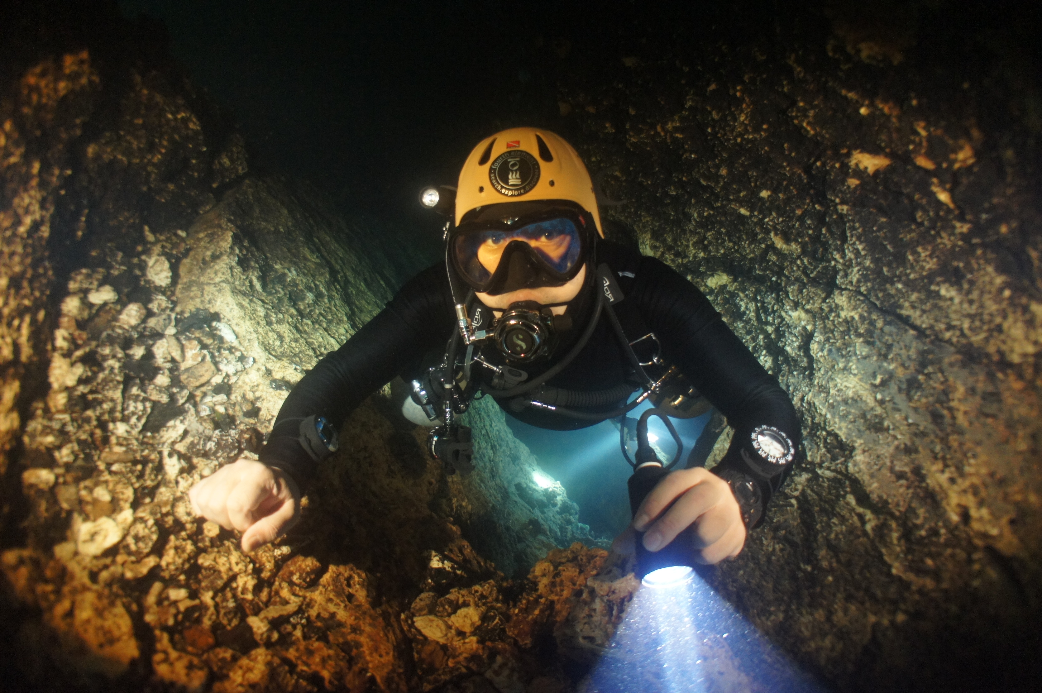 동굴다이빙, 무엇이 재미있나? 무섭지는 않은가?(이경민 마스터) 동굴은 쉽게 들어가기 어려운 오버헤드 환경이다. 내가 들고 있는 라이트를 끄면 암흑만이 남는다. 칠흑 같은 암흑이 두렵게 느껴질 수도 있지만 암흑 속에서 내 숨소리만 고요히 들리는 그 느낌이 좋다. 동굴에도 물고기가 있긴 하지만 수중생물이 큰 볼거리는 아니다. 동굴은 지형이 재미있다. 좁은 입구를 지나면 다시 넓은 공간이 나오는 등 변화무쌍한 지형을 즐길 수 있다.