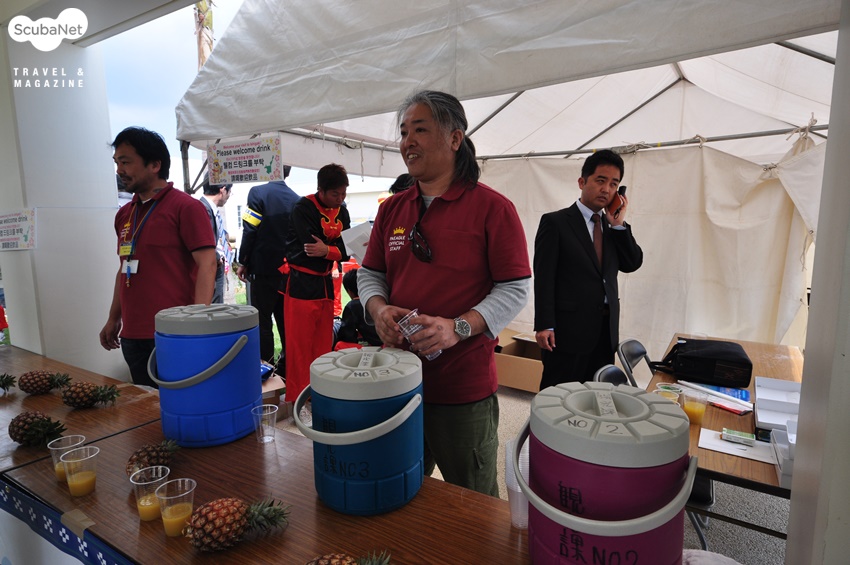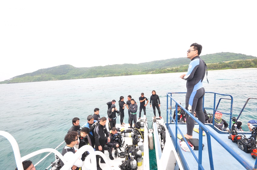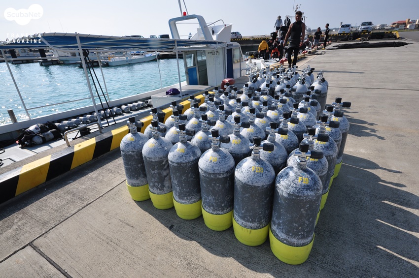 이시가키 다이빙일본 다이빙은 자기 장비는 자신이 직접 챙겨야 하는 스타일이었어요. 처음 장비를 배에 실을 때부터 매 다이빙이 끝난 후 공기탱크를 교환하는 것도, 배에서 내리기 전 장비를 정리해 놓는 것도 모두 직접 해야 했지요. 그동안 스태프들이 장비를 챙겨주는 것에 익숙해졌던 탓인지 다소 불편하게 느껴지기도 하였지만 자기 장비를 스스로 챙기는 게 안전하고 주체적인 다이빙을 위해 더 좋은 방법이겠죠? 한 가지 특이하게 느껴졌던 점은 그동안 익숙히 봐온 알루미늄 탱크가 아니라 스틸 탱크를 사용한다는 것이었어요. 스틸 탱크는 알루미늄 탱크보다 짧고 통통하고 더 무거워요. 통통한 스틸 탱크에 맞게 BCD의 탱크 스트랩을 조정해야 했고, 웨이트도 평소보다 2kg 적게 착용했어요. 준비가 끝났으면 이제 다이빙 고고씽~