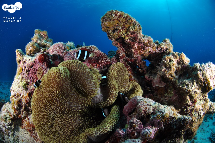 첫째 날 다이빙은 오사키 포인트에서 2회 다이빙을 했어요. 만타 포인트는 아니지만 전 날 이곳에서 만타레이가 나왔다고 해요. 체크 다이빙이지만 오늘도 혹시 만타가 나와 주지 않을까 하는 기대감이 물씬했죠. 파란 바다 한 가운데서 어디에서 만타가 나올까, 딴 짓 하다가 나만 못 보지는 않을까 하는 긴장 반, 설렘 반으로 가이드의 뒤를 따라 열심히 다녔답니다