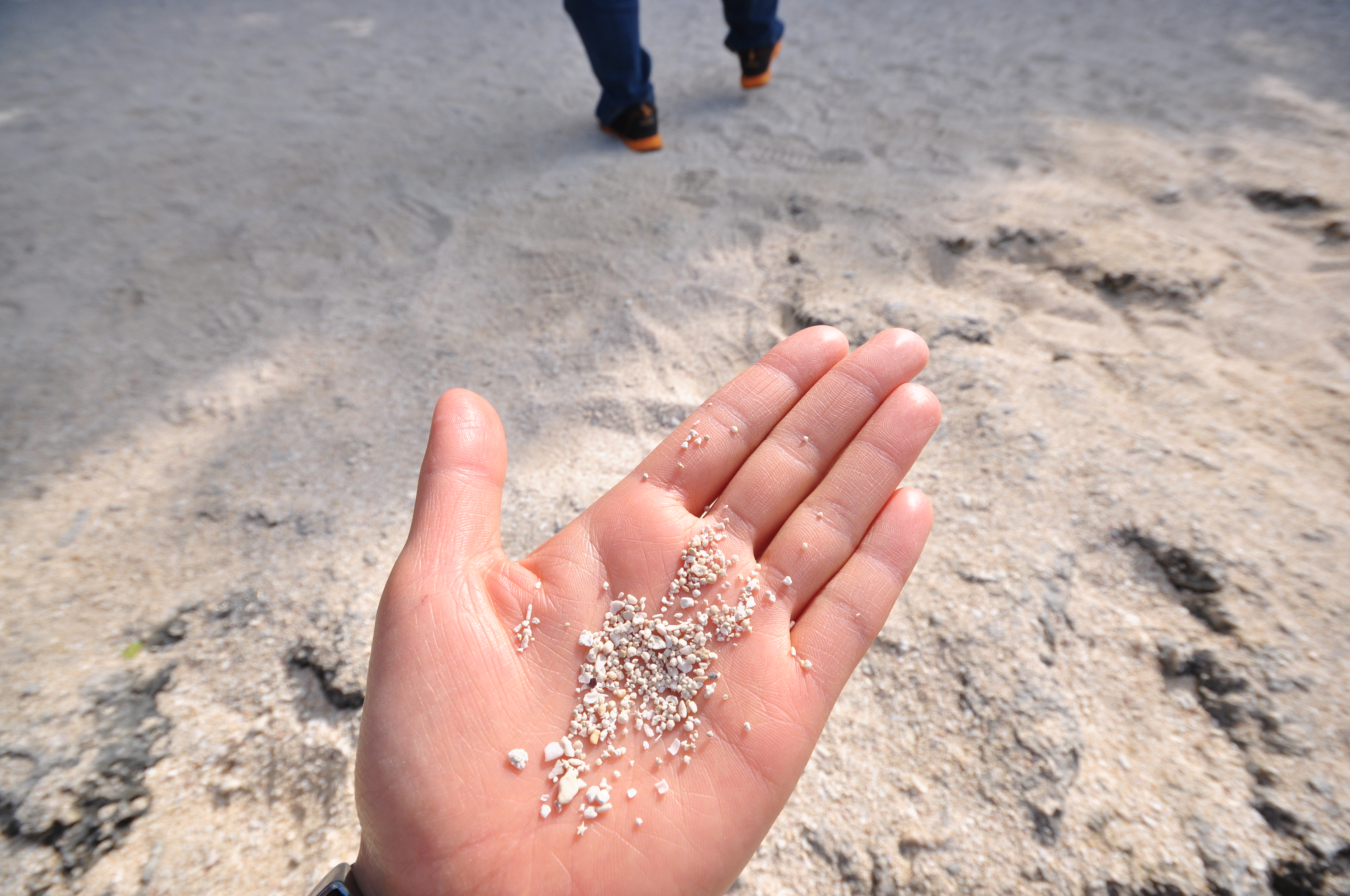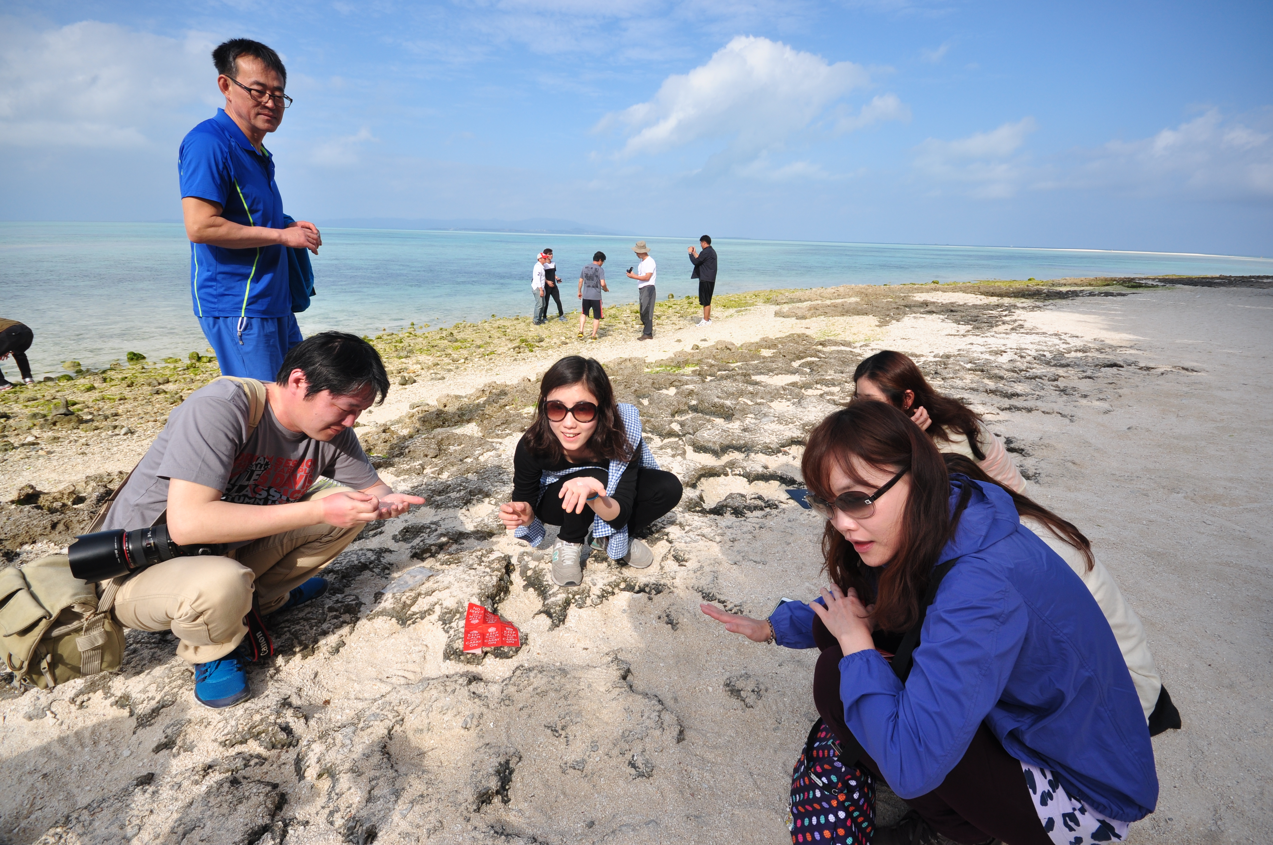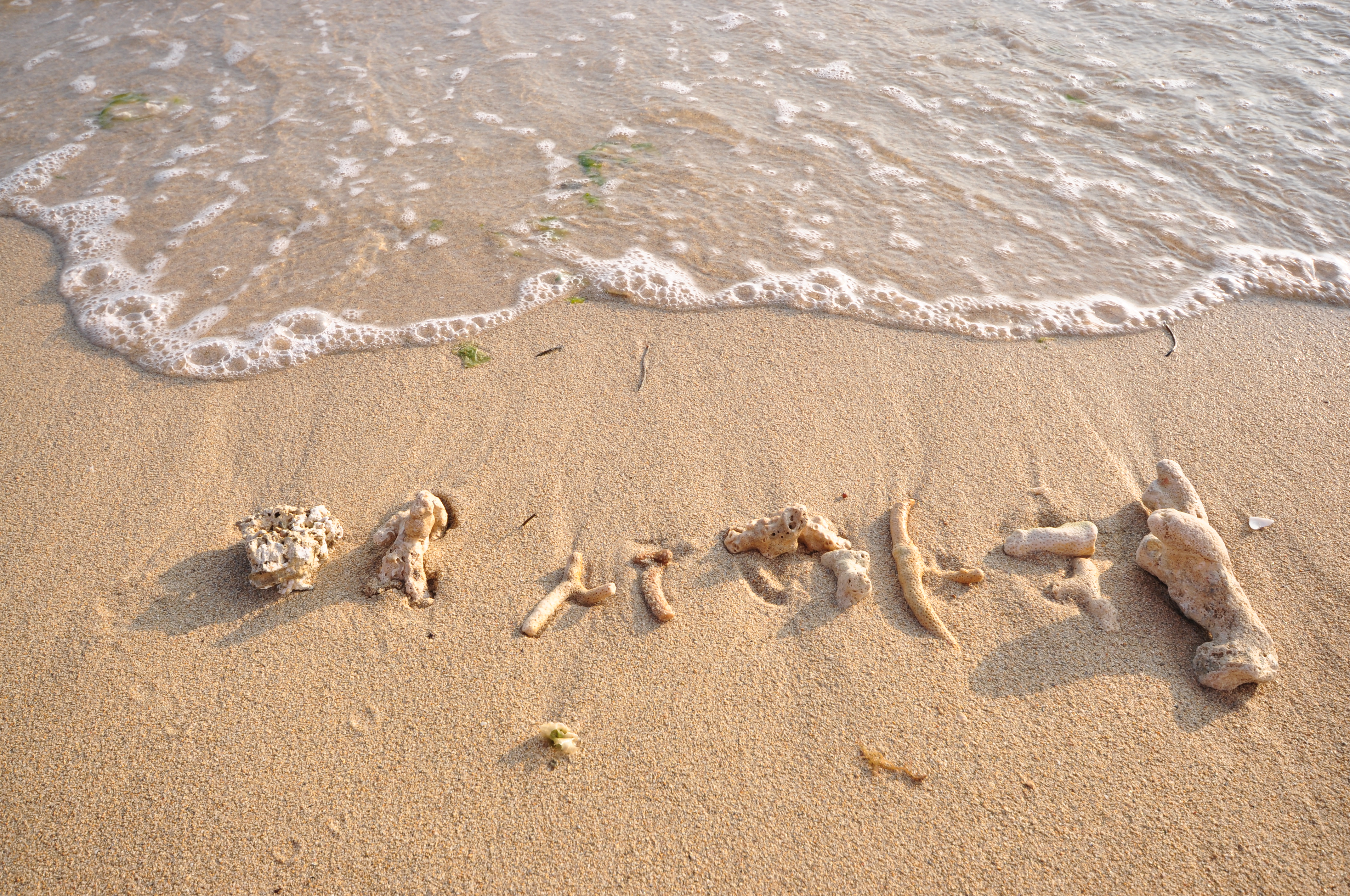 카이지 하마 비치에 도착한 우리는 재빨리 해변으로 뛰어가 모래를 손바닥에 얇게 펼치고 별모래를 찾았어요. 곧 많은 사람들이 별모래를 발견하고 "여기 있다!", "어, 나도 찾았어~" 즐거운 소리를 질렀지요. 찾은 별모래는 가져가도 괜찮아요. 별모래를 찾기는 쉬웠지만 발견한 별모래를 한국까지 잘 담아가기가 어려웠어요. 그래서 결국 유리병에 담긴 별모래를 구입했지만 행복을 기대하며 별모래를 찾는 것은 즐거운 경험이었어요.