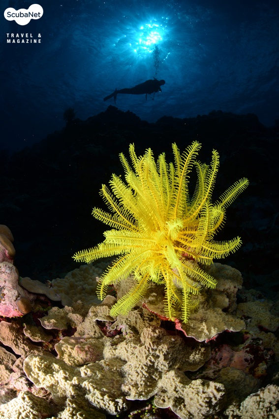 넓은 지역이 한눈에 들어오는 맑은 시야에 비해 부착생물 군집들이 경산호 일색으로 단순해 보이는 환경이기는 하지만 스케일이 보이는 수중 지형 자체와 군데군데 숨어 있는 해양생물들이나 산호를 소재로 평소 시도할 수 없었던 사진들을 연출하는 재미가 있던 포인트들이다.