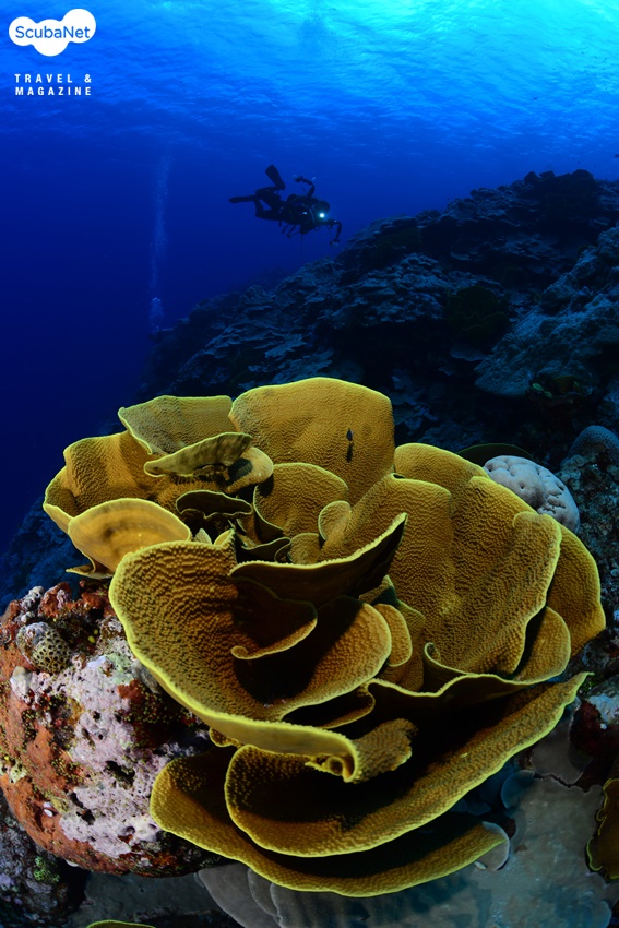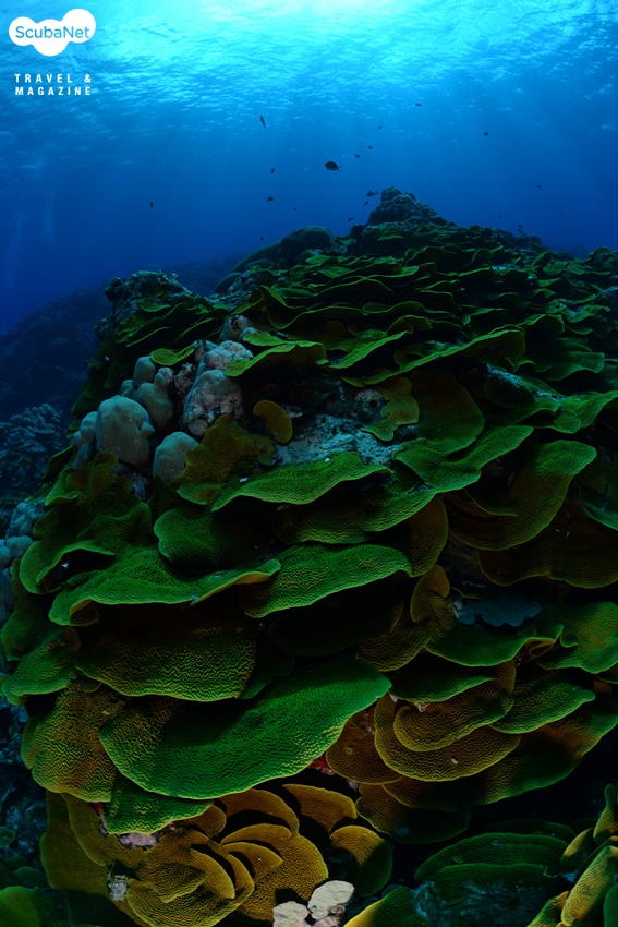 끝 모를 시야의 산호초 외해다이버들에 따라 선호도가 갈리기는 했지만 얍의 산호초 외해는 시력이 시야라는 말이 어울릴 정도로 물이 맑다는 것이 다이버들을 설레게 만들었다. 수중사진을 촬영하는 사람들이라면 이해할 수 있는 꿈에 그러던 물색이 아무런 조작 없이 자연스럽게 표현되는 환경이었다.