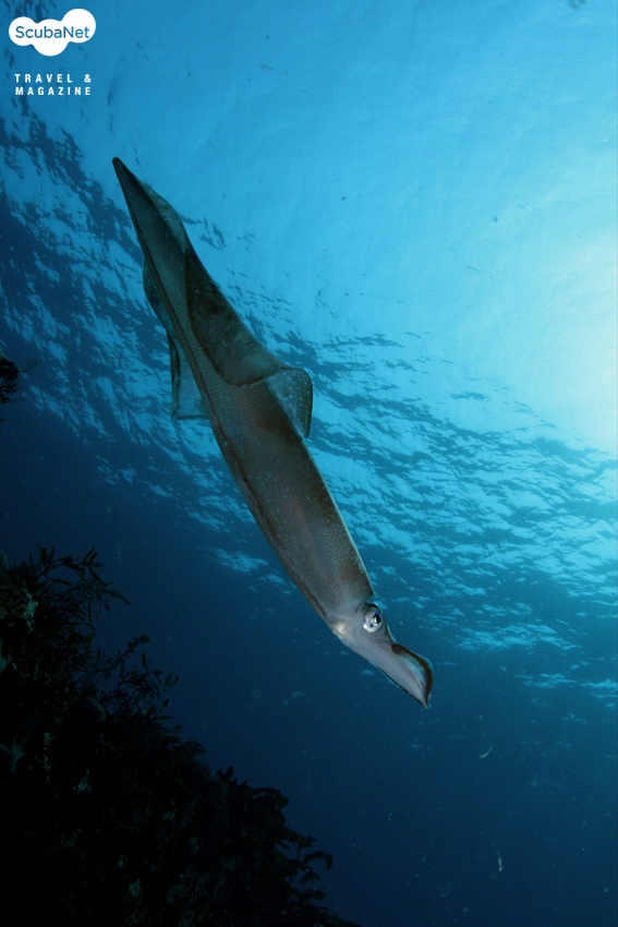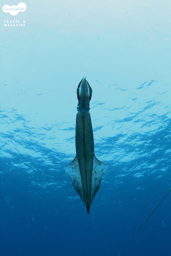 흰꼴뚜기(Sepioteuthis lessoniana)는 지느러미가 몸통의 전체에 걸쳐 날개처럼 있어서 쉽게 구분이 됩니다.흰오징어라고 불리기도 합니다. 영어명은 Big fin reef squid입니다.*살오징어목-꼴뚜기과