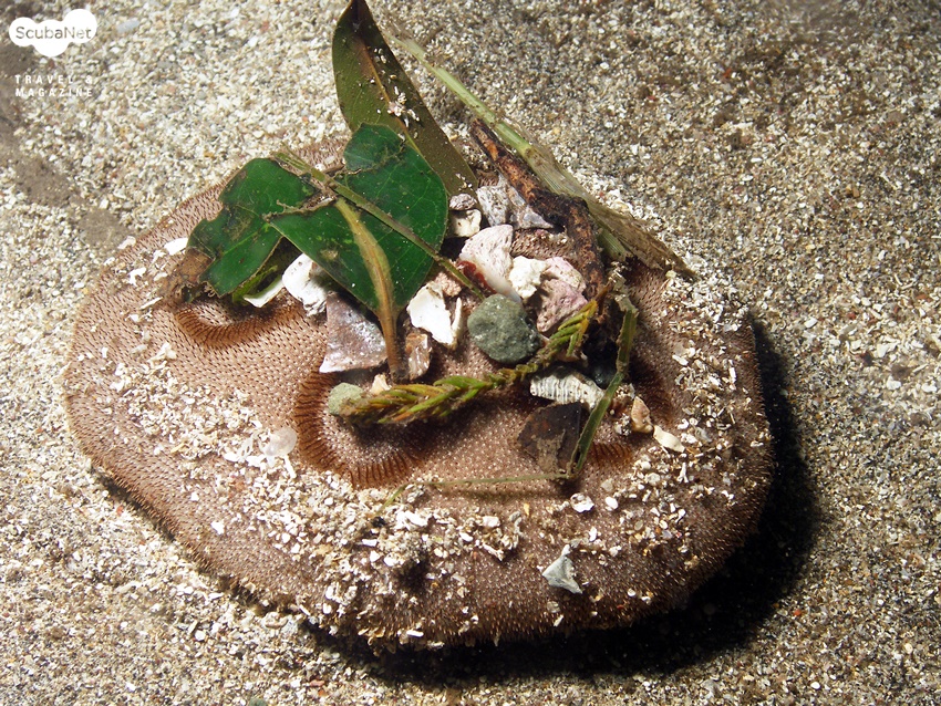 DEPC ☞ 설명에 적어주신 대로 방패연잎성게는 위장의 목적으로 지저분해 보일 정도로 무언가를 붙이고 있지요.
