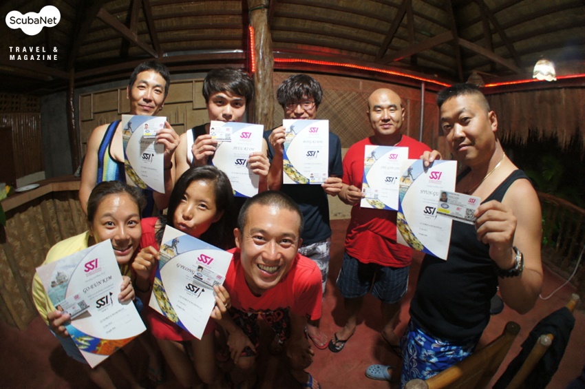다른교육생들과 함께 프리다이빙 인증서를 받고 기념샷~