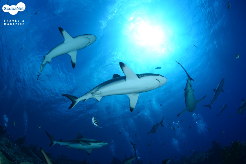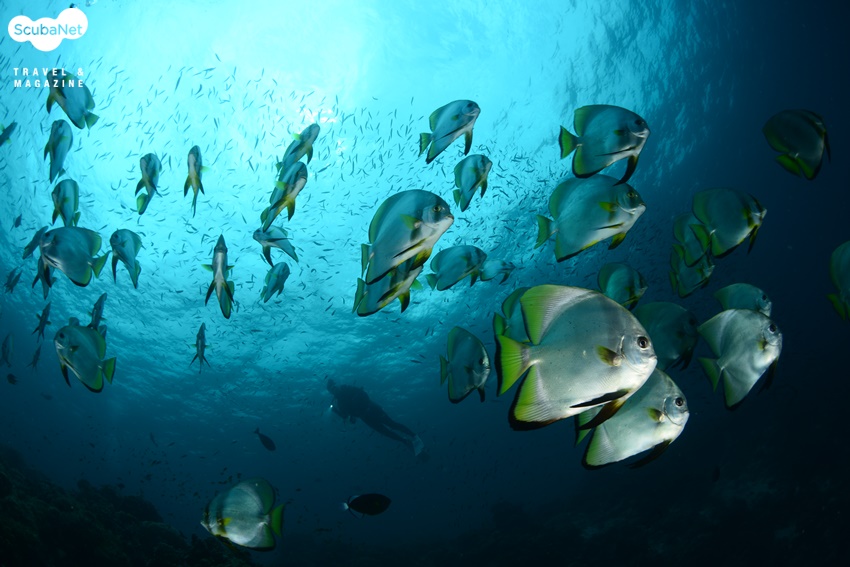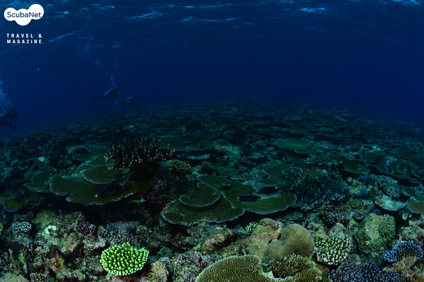 건강한 하드코랄 군락과 다이버, 얍