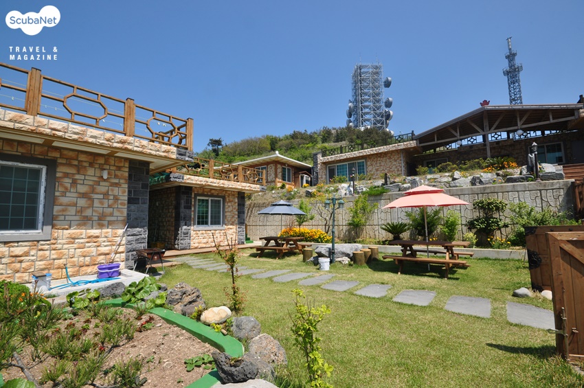 아름다운 펜션추자도에서 다이빙을 즐기는 다이버들은 "아름다운 펜션"에 머물게 된다. 아름다운 펜션은 이름처럼 아름답게 단장된 곳이었다. 그렇다고 너무 화려한 장식으로 부담스럽게 느껴지는 곳이 아니라 잘 가꾼 전원 주택과 같은 아름다움이었다. 많은 인원이 함께 왔을 때 편리하게 이용할 수 있는 다인실은 공동 거실을 중심으로 세 개의 넓은 방이 배치되어 있었다. 거실은 주방을 겸하고 있어 취사가 가능하고 각방에 샤워실이 있다. 많은 인원이 함께하다 보면 거실에 모여 놀고 싶은 사람과 방에서 조용히 쉬고 싶은 사람이 나뉘기 마련인데 이런 상황에 적합한 구조이다. 또 커플들을 위한 2인실이 따로 있어 연인과의 여행에도 안성맞춤이다. 정성스럽게 가꿔진 정원에는 노란 꽃이 활짝 피어있었고 그 뒤로는 바다가 훤히 보이는 멋진 전망이 펼쳐졌다.
