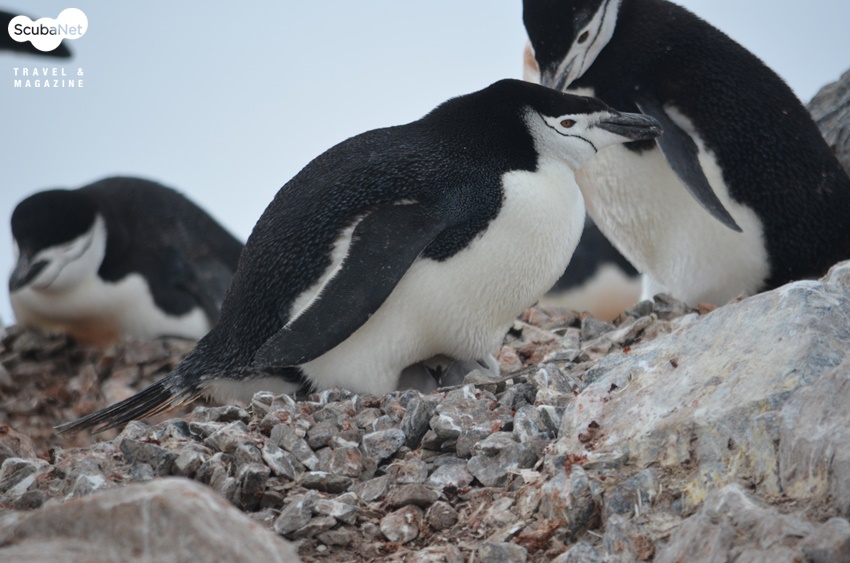 새끼를 품고 있는 턱끈펭귄(촬영/남극 킹조지섬 펭귄마을)