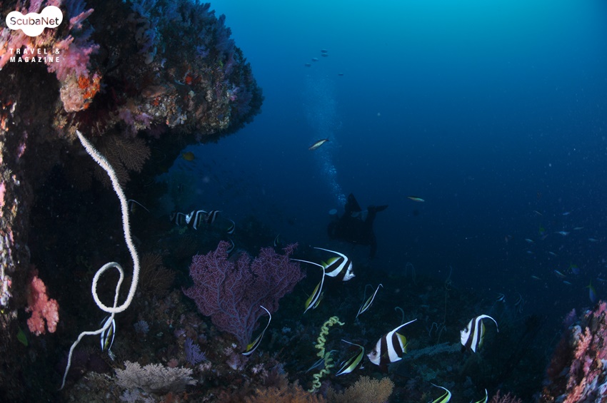 Tech Asia dive center & Club Mabuhay dive resort, Small Lalaguna 원래 이번 다이빙 투어의 주요 취지는 테크니컬 트라이믹스 체험 다이빙(Technical trimix experience diving)이었다. 15일 오후에 아닐라오에서 일정을 끝내고 두분 지인들과 함께 사방비치(Sabang beach)로 넘어왔다. 필자는 숙식만 클럽 마부하이 리조트에서 해결하고, 다이빙은 텍 아시아에서 진행하였다. 텍 아시아는 테크니컬 다이빙만을 전문으로 안내하는 곳으로 데이브라는 잉글랜드 출신 사장이 경영을 하고 있으며, 수석강사로는 사방에서만 15년간 테크니컬 다이빙 전문 가이드 생활을 해온 샘(Sam, 잉글랜드)과 보조강사로는 퍼그(Ferg, 아일랜드) 이렇게 두 사람의 강사가 있다. 처음 이틀간은 트라이믹스(Trimix)와 50% 나이트록스 감압 기체를이용하여 일반 레크리에이션 다이버들이 갈 수 없는 수심 50m 이상의 포인트에서 퍼그의 안내로 깊은 고요함을 느낄 수 있는 다이빙을 즐겼다. 한 가지 아쉬웠던 점은 40m 아래로 내려가니 카메라 하우징 버튼들의 작동이 어려워 제대로 촬영하지 못했다는 점이다. 딥 몽키비치 리프(Deep monkey beach reef, 53m), 스위트립스 코너/마르쿠스 캐이브(Sweetlip conner & Marcus cave, 51m)와 딥 사방(Deep Sabang, 45m)에서 촬영한 사진 몇 장을 소개한다.