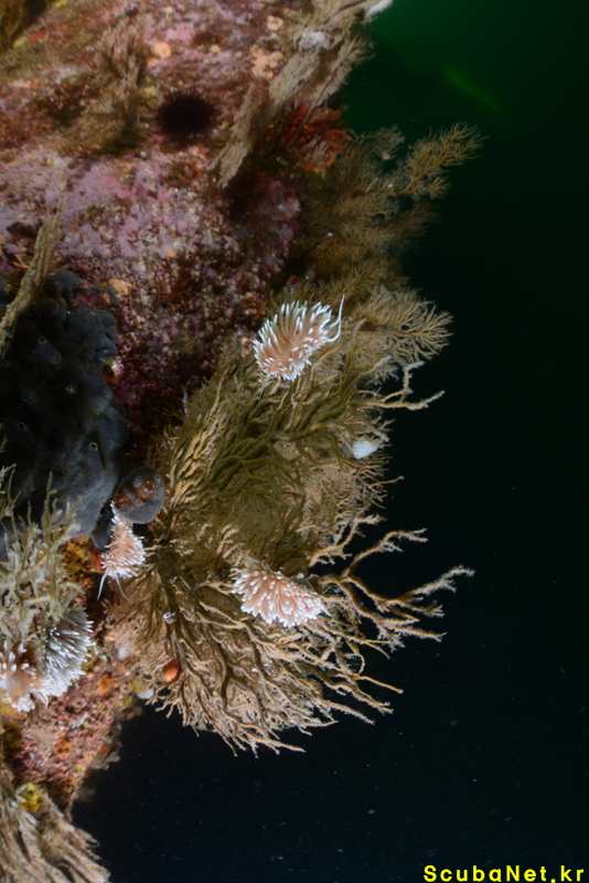 푸대기짬으로는 크랙 사이의 볼락무리를 촬영하기 위해 들어갔지만 시야가 흐려서인지 원래 볼락들이 있던 곳에는 그 수가 많이 않았고, 오히려 부이라인 근처로 수많은 볼락들이 나와 돌아다니고 있었다. 푸대기짬의 절벽 쪽으로는 멍게와 히드라산호붙이들이 군락을 이루고 있었고, 마침 수많은 눈송이갯민숭달팽이들이 히드라산호붙이 위에서 짝짓기와 산란을 하는 모습을 볼 수 있었다.