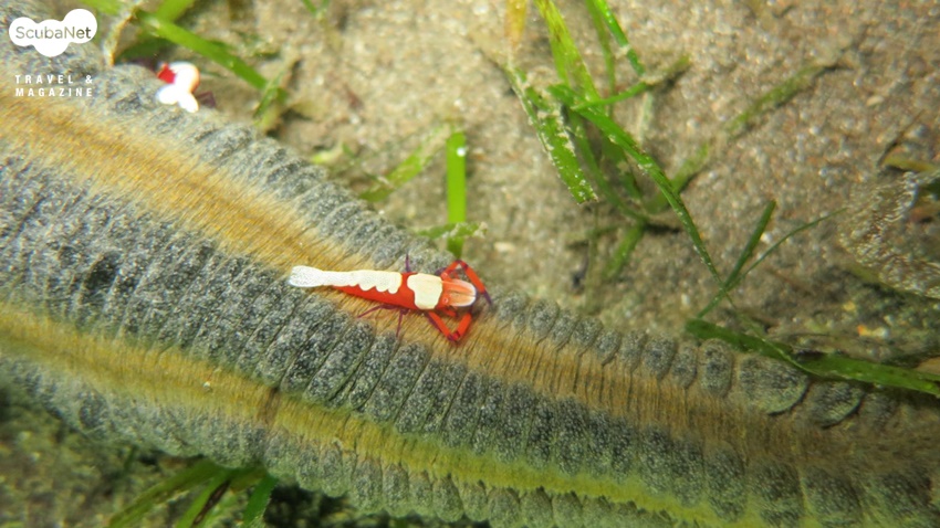 해삼에 붙어 있는 공생 새우